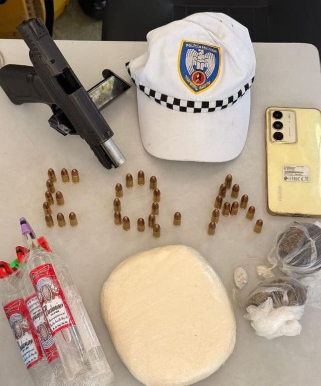 Imediatamente, foi solicitado apoio para buscas na região, tanto terrestre quanto aéreo. Enquanto isso, os policiais retiraram os demais ocupantes do veículo, totalizando sete pessoas. Durante a revista no automóvel, foram localizados 485 gramas de cocaína, duas buchas de maconha, uma pistola 9mm, 34 munições e sete frascos de “loló”.