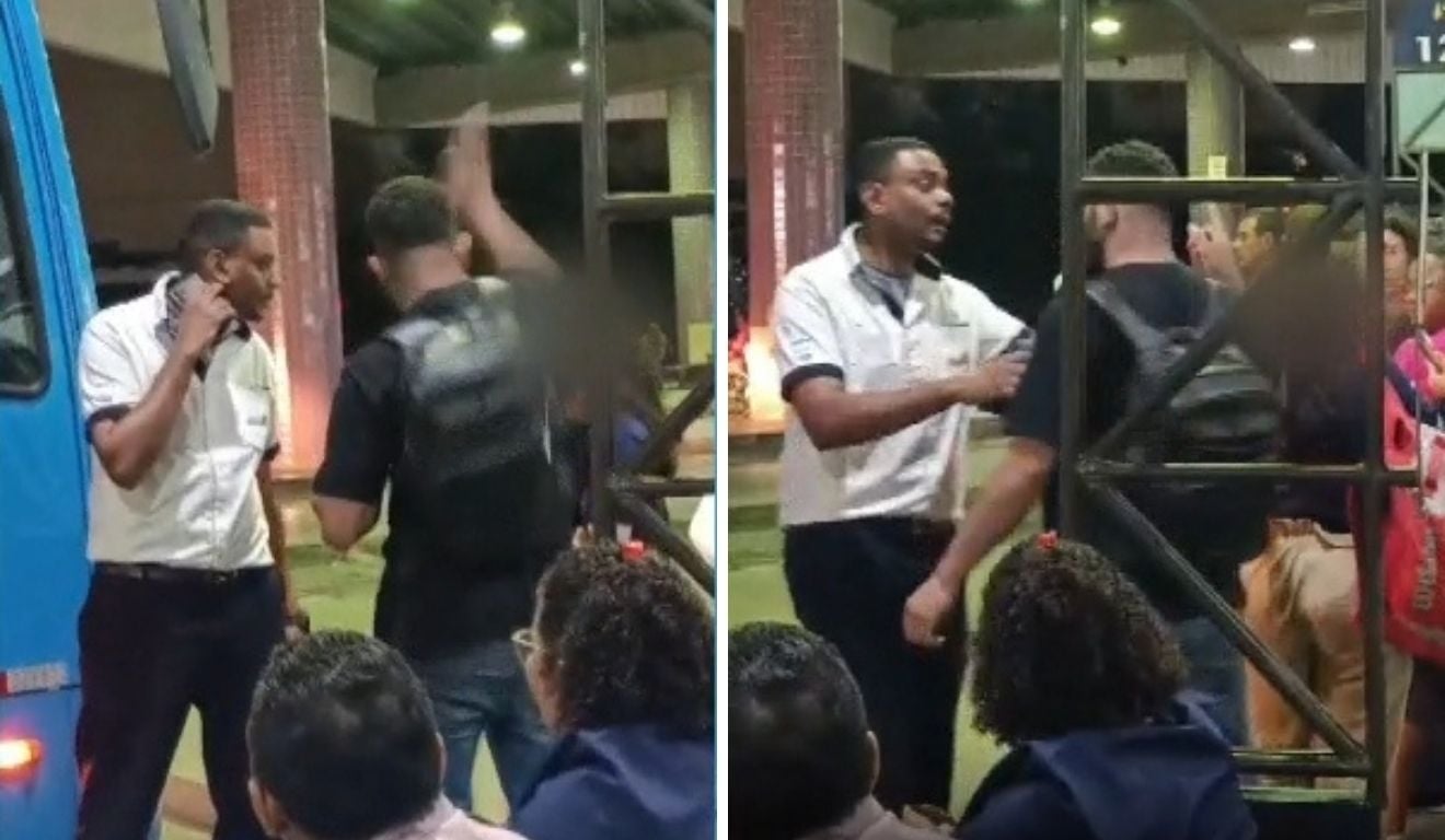 Ele me abordou e eu não quis conversar, pois tenho uma medida protetiva contra ele. Ele saiu e eu tentei ligar para polícia, mas ele percebeu e voltou para tentar pegar meu celular. Eu pedi ajuda ao fiscal e aí ele me deu dois tapas no nariz, que acabou fraturando. Ele fugiu, eu chamei a polícia e fui para o DPJ fazer o boletim.