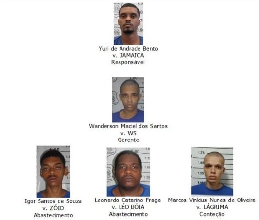 Logo abaixo dele estava Wanderson Maciel dos Santos, de 33 anos, conhecido como W.S, que tinha função parecida com a de Yuri. Ele também foi preso. Outro gerente, João Manoel Fraga, de 30 anos, também já foi detido.