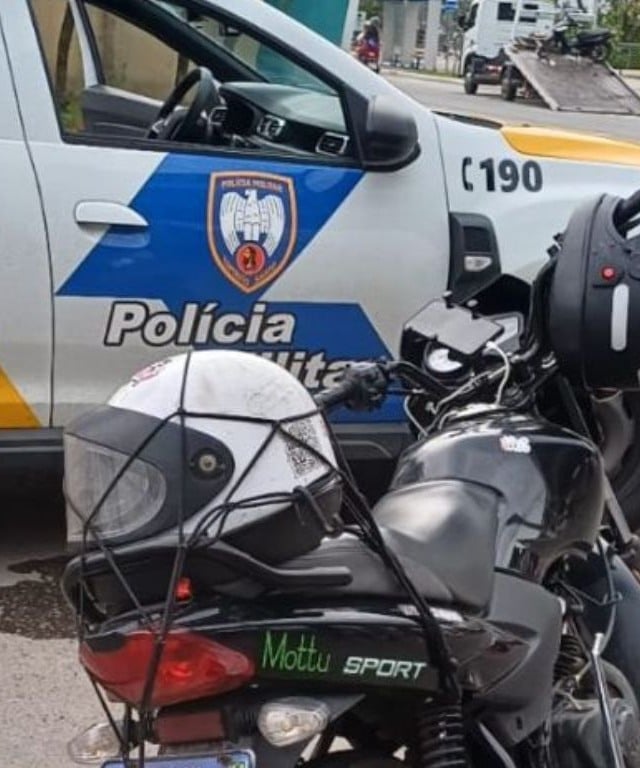 Segundo a PM, o condutor da moto estava com a Carteira Nacional de Habilitação (CNH) cancelada e é suspeito de estar sob efeito de drogas. Ele disse aos militares que estava atuando com motociclista de aplicativo.