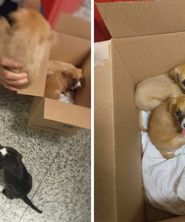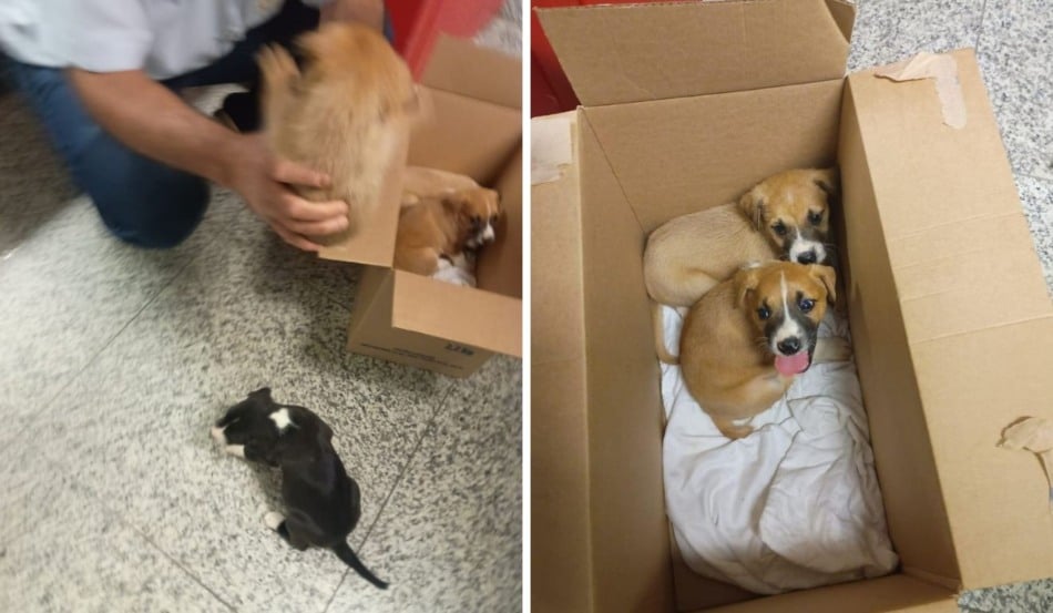 Imagens de videomonitoramento mostram a mulher chegar ao estabelecimento com uma caixa onde estão os quatro cachorros. Em seguida, ela deixa os filhotes no chão e foge do supermercado. O vídeo repercutiu nas redes sociais.