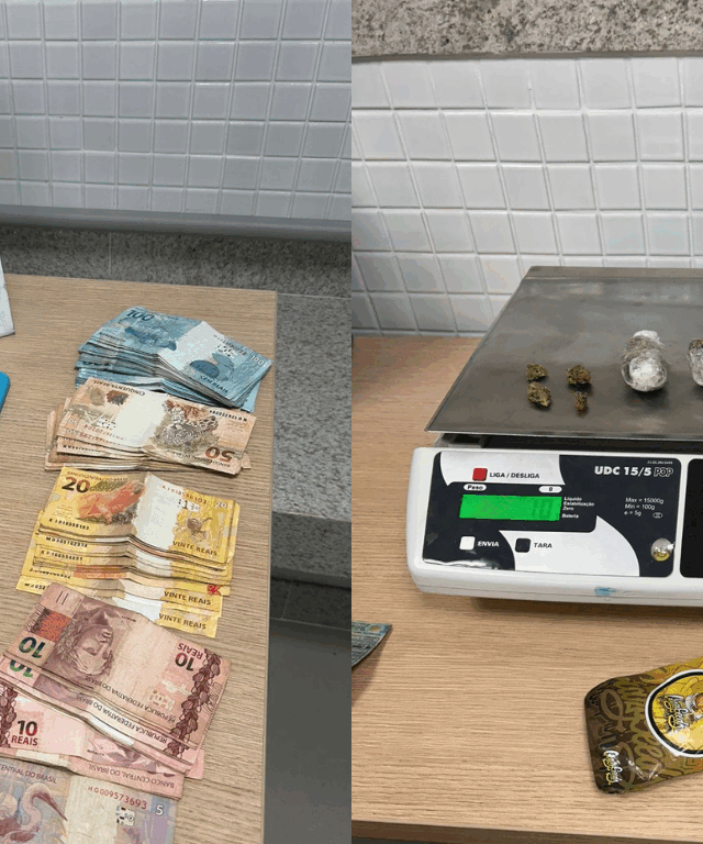 Embora a suspeita de adulteração do veículo não tenha se confirmado, a revista no automóvel resultou na descoberta de R$ 5.570,00 em dinheiro, uma substância análoga à maconha, e uma pistola 9 mm com a numeração raspada.