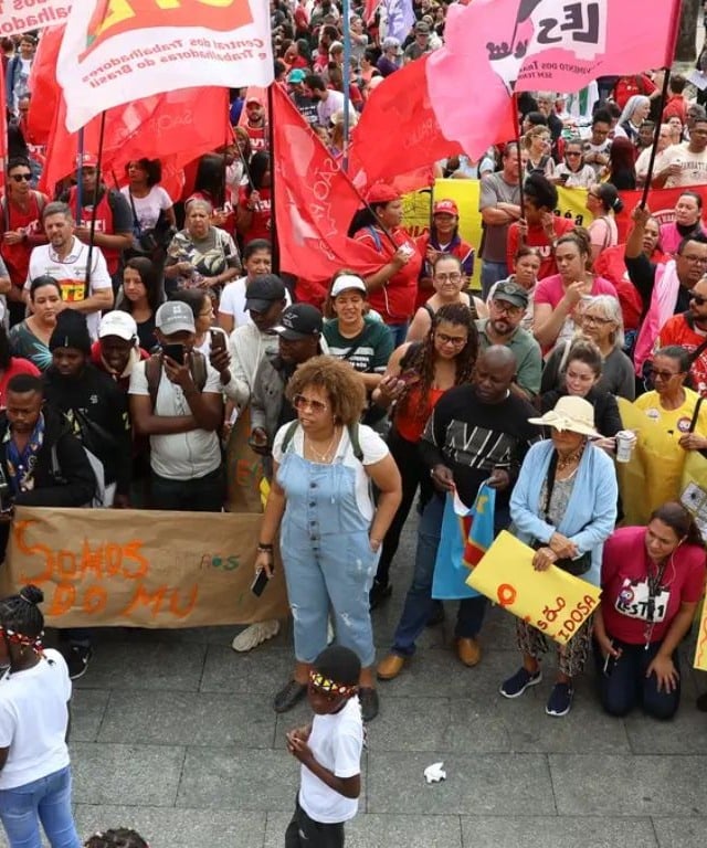 A defesa de outras pautas surge também na praça a partir do conteúdo de bandeiras e faixas estendidas, como o fim da escala trabalhista de 6 x 1 (seis dias de trabalho para um de descanso); a “taxação dos super-ricos”; a não anistia aos condenados aos ataques em Brasília, no 8 de janeiro de 2023; e também pela prisão de Bolsonaro, que está sendo julgado pela primeira Turma do Supremo Tribunal Federal (STF).