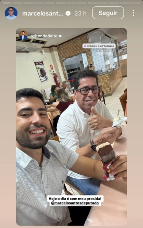 O parlamentar tem estado bastante próximo do presidente da Assembleia, Marcelo Santos (União), que preside o União Brasil no Estado e está formando chapas para as eleições do ano que vem. Eles têm participado de eventos, reuniões e, na semana passada, estiveram juntos em Linhares.