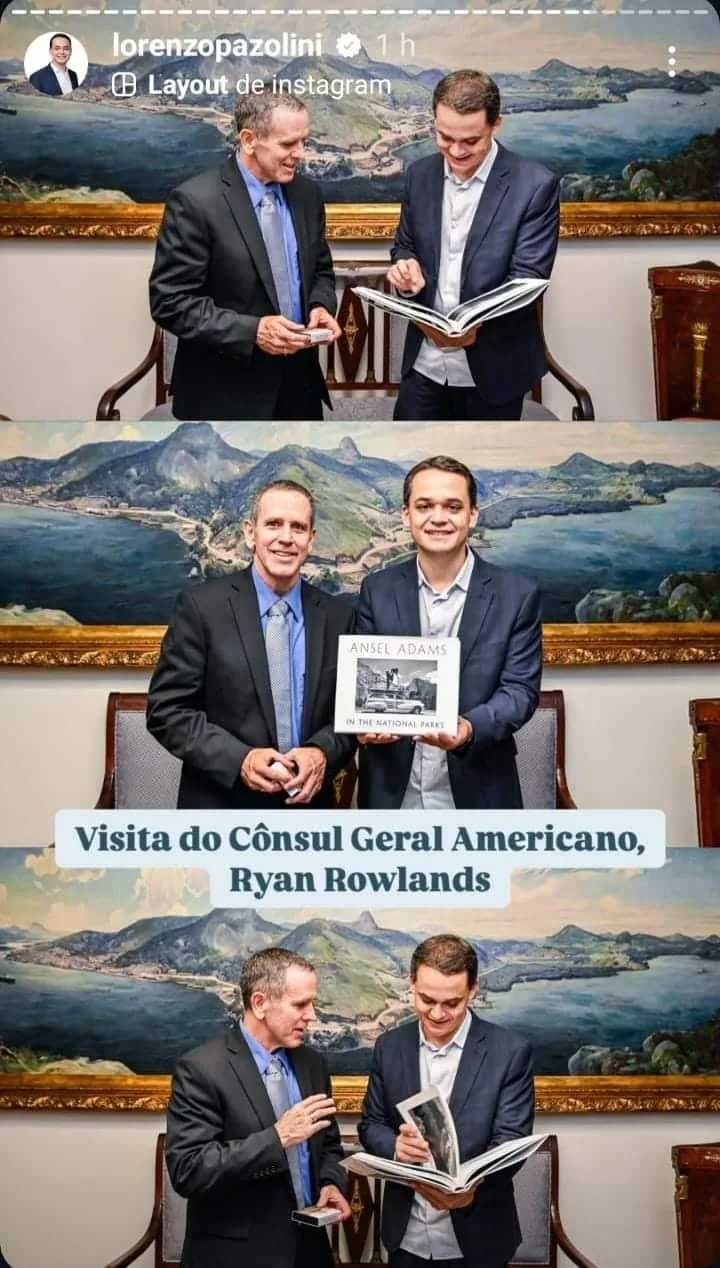 “O prefeito Lorenzo Pazolini e a vice-prefeita eleita receberam o cônsul-geral dos Estados Unidos, em Vitória, no mesmo horário. Foi um encontro que reforçou o intercâmbio comercial, com foco na geração de emprego, renda e novas oportunidades para a cidade. Durante a reunião, foram discutidos investimentos e apresentados os resultados alcançados pela gestão”, diz trecho da nota.