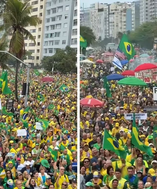 O ato bolsonarista em Copacabana está previsto para começar às 11 horas, mas apoiadores do ex-presidente já estão no local. Alguns carregam faixas com inscrições “Fim da ditadura do STF”; “Senadores omissos, + moral e – moraes”; “anistia já”; “fora Moraes”; e “fora Lula”.