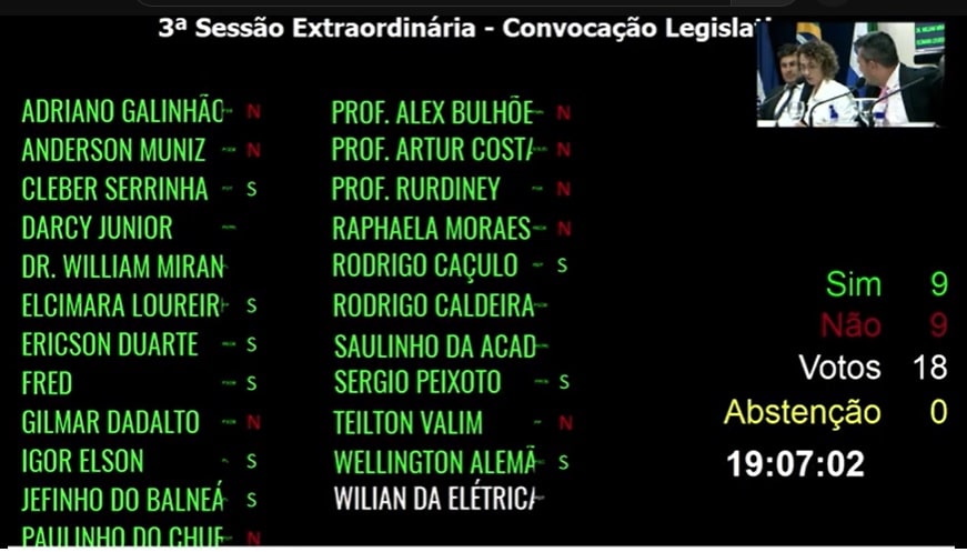 O projeto não constava na pauta de votações da sessão desta quarta-feira (10). Ele foi protocolado somente às 17h50, quando a sessão – que começa às 16h – já estava correndo. No final da sessão ordinária foi lido o requerimento para convocar uma sessão extraordinária logo em seguida, mas sem citar o teor do projeto que seria votado.