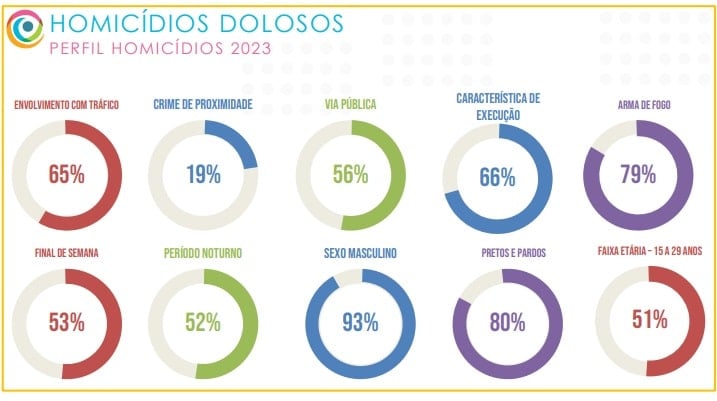 Entre os dados apresentados, o secretário de Segurança mostrou que 51% das vítimas de assassinatos são jovens, na faixa etária dos 15 aos 29 anos, e que 80% são pretos e pardos, o que representa também um desafio para a Segurança Pública.
