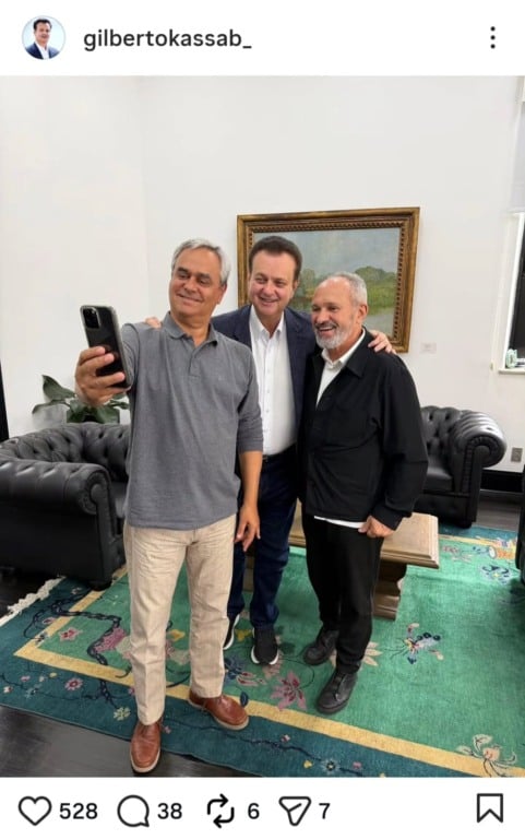 Em tempo: Enquanto o governador anunciava o seu sucessor na disputa ao Palácio Anchieta, na tarde de quinta-feira (18), Kassab se encontrava com Hartung e Zé Carlinhos – aliado do ex-governador. O encontro virou postagem, com foto, nas redes sociais e Kassab escreveu:
