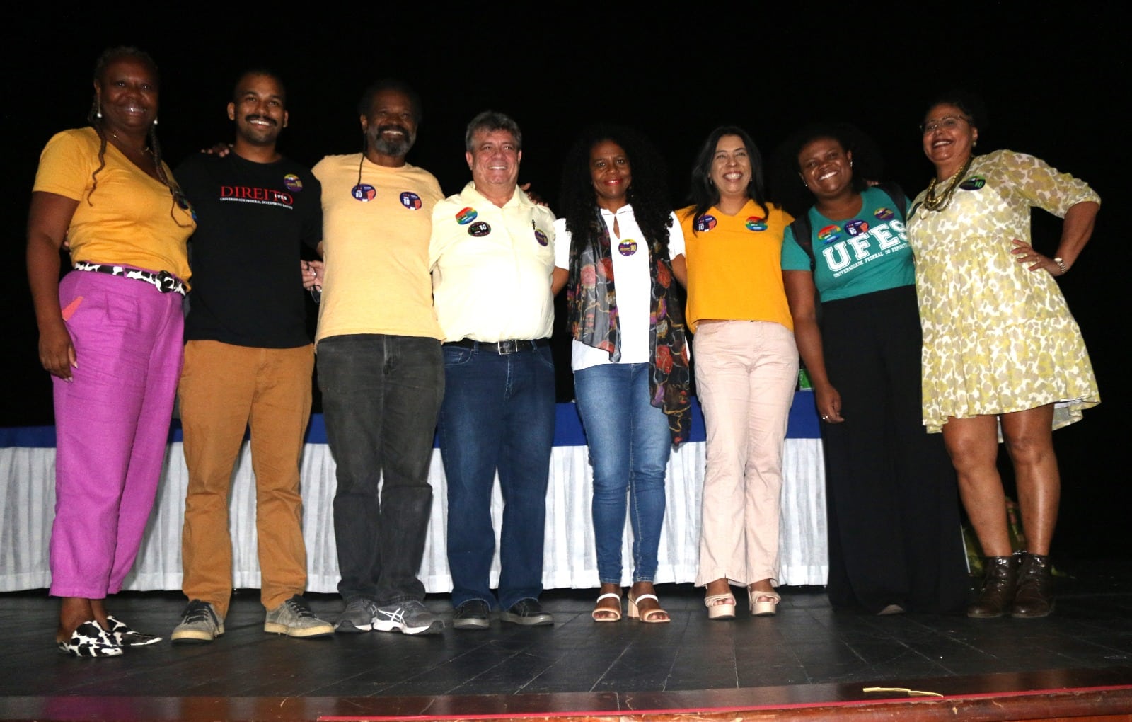 chamado ‘Ufes +’, que congrega professores, técnicos-administrativos e estudantes da Universidade. Nós queremos representar esse projeto que é o de uma universidade pública, gratuita, laica, socialmente referenciada e que tenha como princípios a autonomia universitária, a inclusão e o respeito à diversidade”.