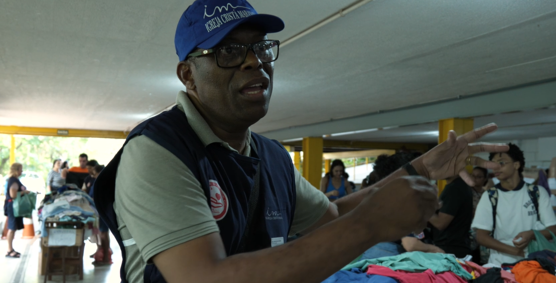 E no bazar – onde roupas e calçados ganham novo destino –, o pastor Manoel Bento de Oliveira mostra como cada peça passa por triagem e vira dignidade: “As irmãs voluntárias se reúnem, fazem triagem. Algumas peças precisam ser lavadas, outras não dão para usar. O que está apto vai para doação”.