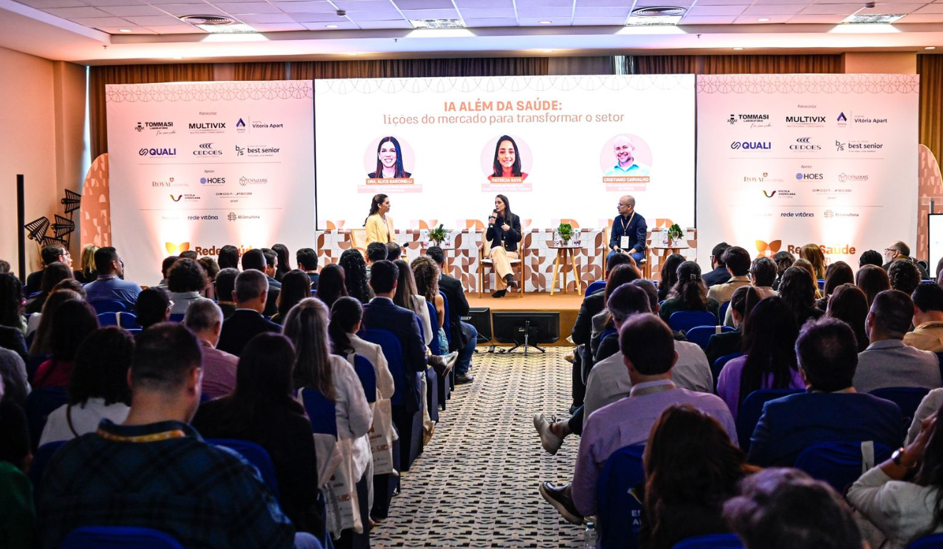 Alice Sarcinelli também mediou o painel “IA além da Saúde: Lições do Mercado para Transformar o Setor”, que contou com a colaboração de Diego Libanio, fundador do Zé Delivery, abordando logística e tecnologia, Patrícia Raya, gerente de Benefícios da ArcelorMittal, que falou sobre a visão da indústria e Cristiano Carvalho, CEO da Escola Americana de Vitória, que trouxe reflexões sobre o papel da educação na transformação digital da saúde. Durante o debate, Cristiano Carvalho destacou a importância do letramento digital. “A IA já permeia todos os setores. O desafio é aprender a utilizá-la para aprimorar o atendimento e a sustentabilidade dos negócios, tanto na educação, quanto na saúde e nos demais setores”, pontuou.