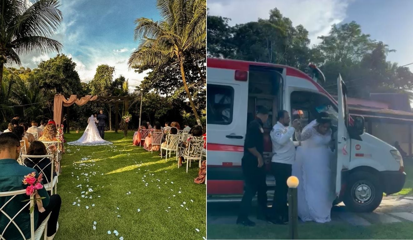 A sirene de uma ambulância durante a cerimônia de um casamento não é um som comum. Entretanto, para a surpresa dos seus convidados, o veículo normalmente associado a questões de saúde foi a “carruagem” perfeita para a noiva Ana Paulla Pedroza.