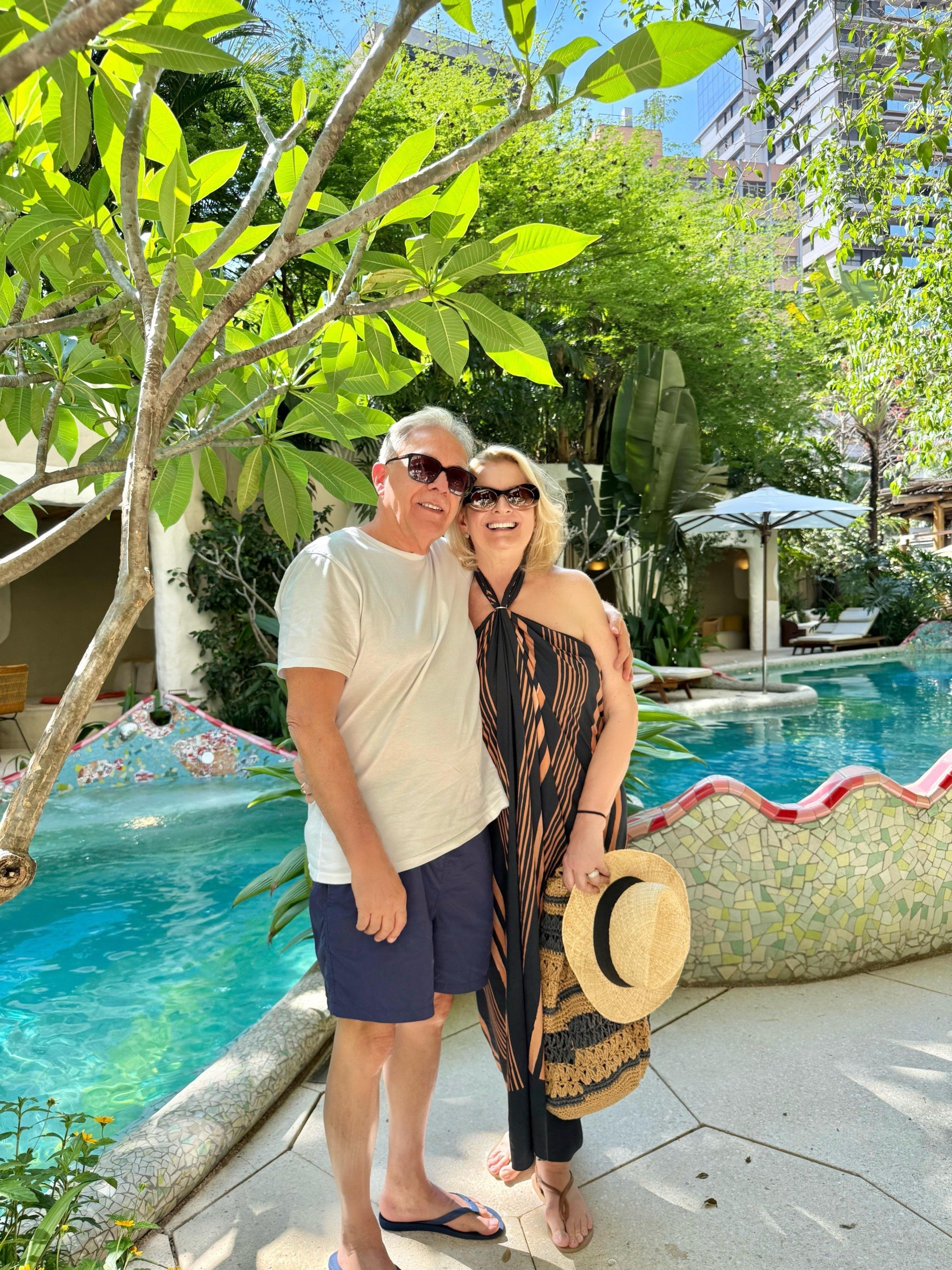 Solange e Mario Herkenhoff desta vez escolheram São Paulo para curtir uns dias e comemorar o aniversário do Mario. As manhãs ensolaradas foram na piscina do luxuoso hotel Rosewood, ancorado na “Cidade Matarazzo”, onde estão hospedados. Viver também é uma arte e eles sabem disso!
