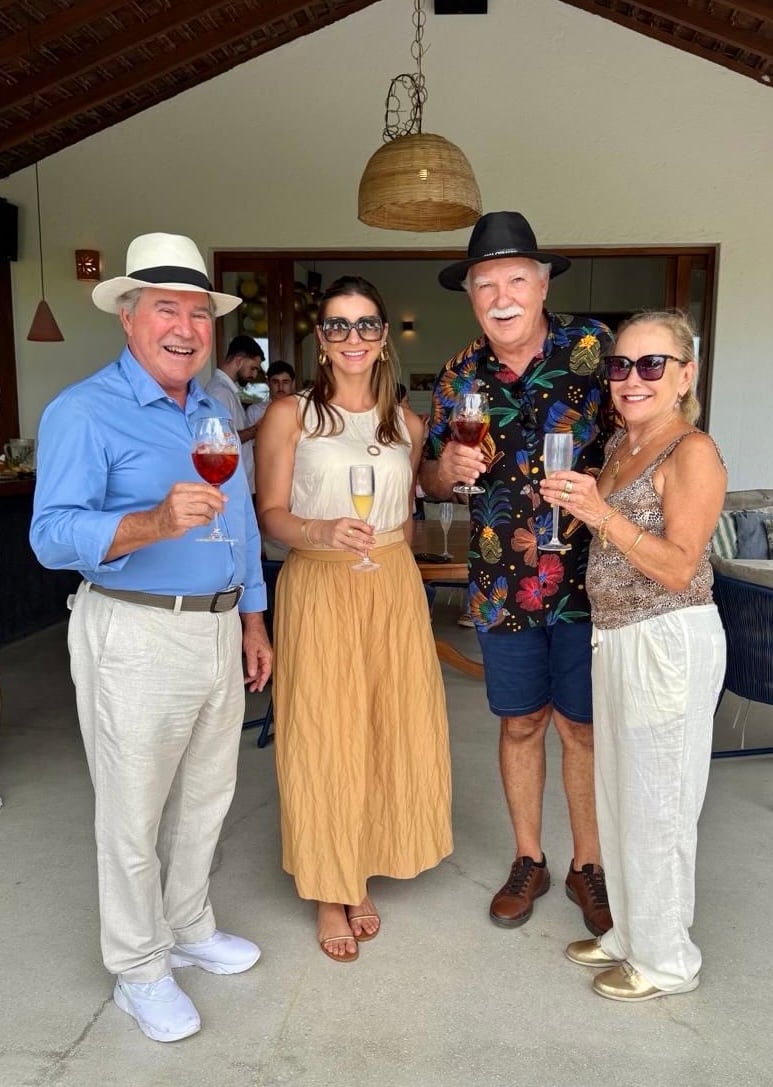 Marcia e Elcio Alves, conforme já noticiei, estão curtindo dias em Trancoso, sul da Bahia. Com eles também, outro casal bacana, Martinha e Walter Piana. Aliás, Martinha e Walter comemoraram ali, Bodas de Ouro.