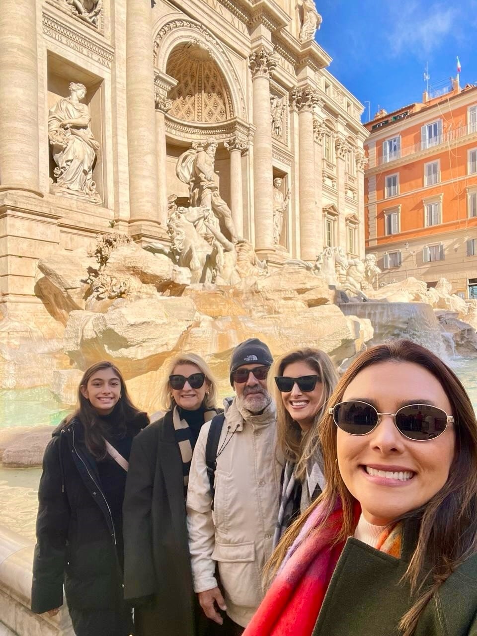 Gracinha e Moyses Nader com as filhas Stephanie e Belisa, e a neta Sophia em Roma, tendo ao fundo a famosa Fontana di Trevi