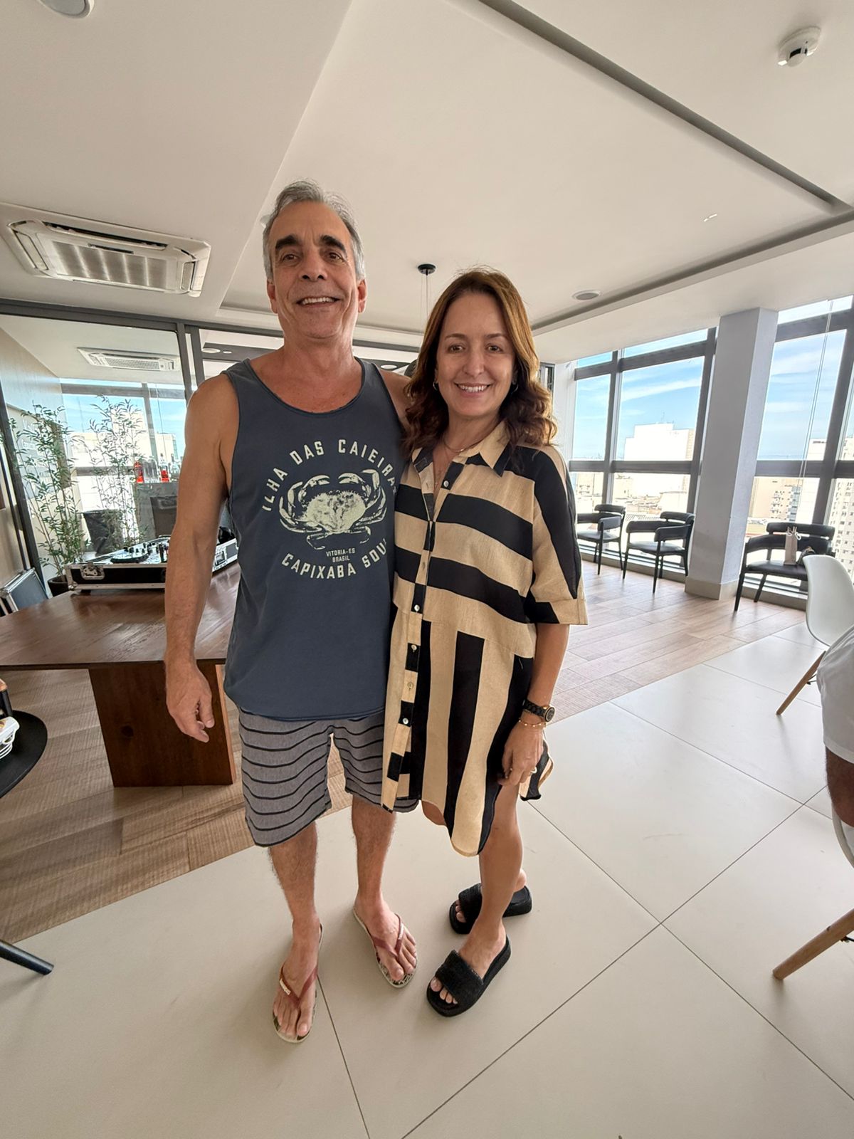 Serjão Magalhães acompanhou a esposa, Rosana Guasti, na comemoração de seu aniversário com as amigas da academia, sábado, na Joaquim Lyrio.