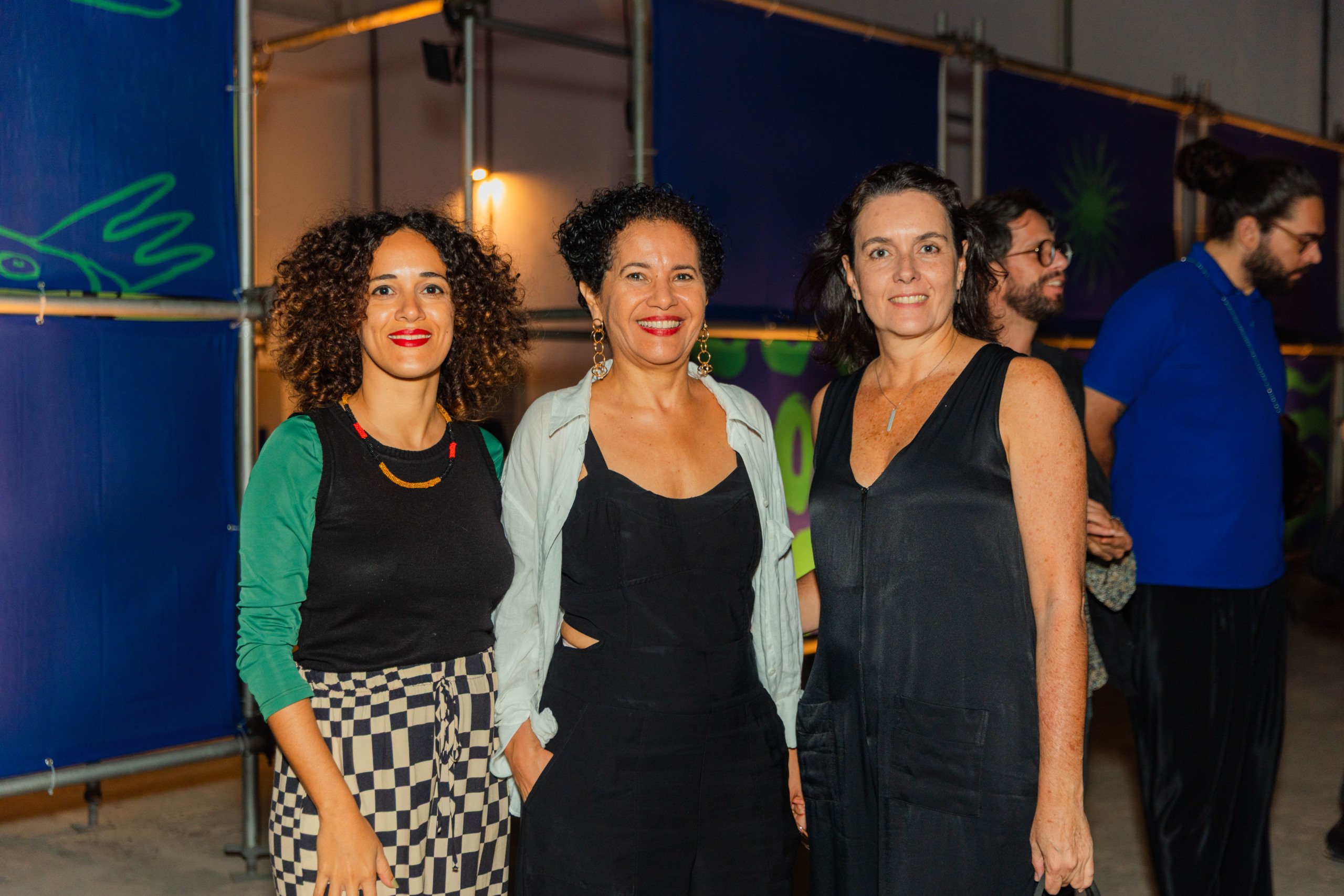 As designers Juliana Lisboa e Isabela Castello foram visitar a exposição “Baía de Vitória: Outras Margens Possíveis”, no Armazém 5, do Porto de Vitória, no centro da cidade, que tem a coordenação da arquiteta Angela Gomes (ao centro). A mostra pode ser visitada até o dia 7 de dezembro.