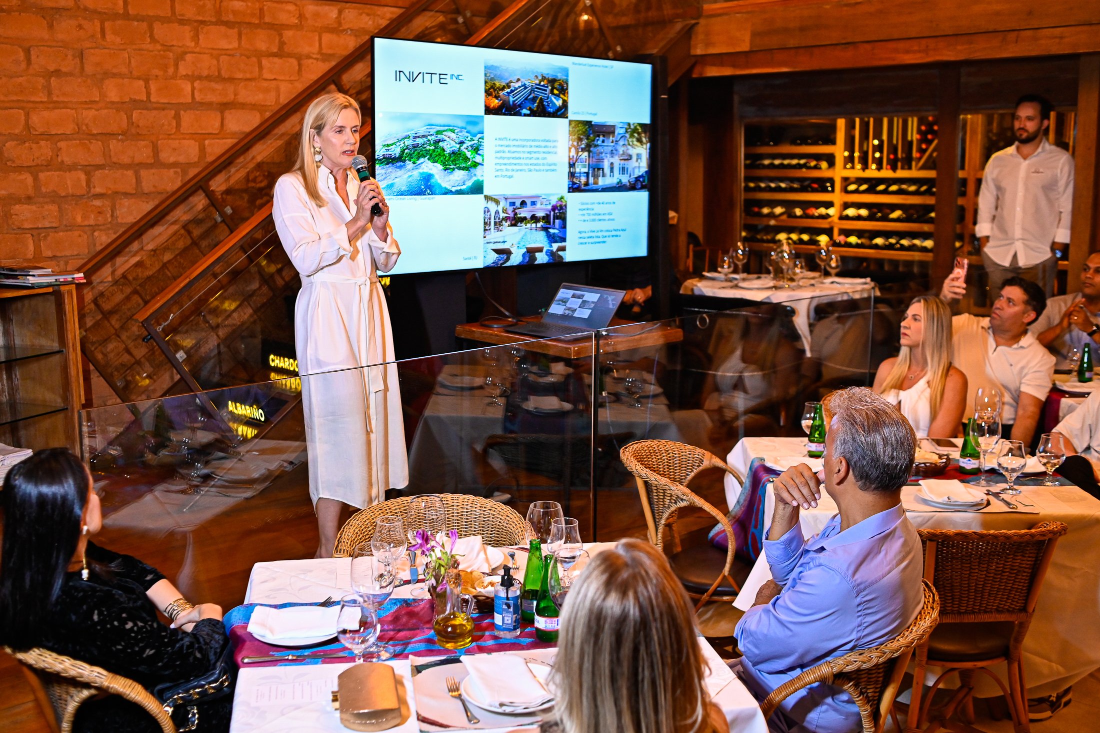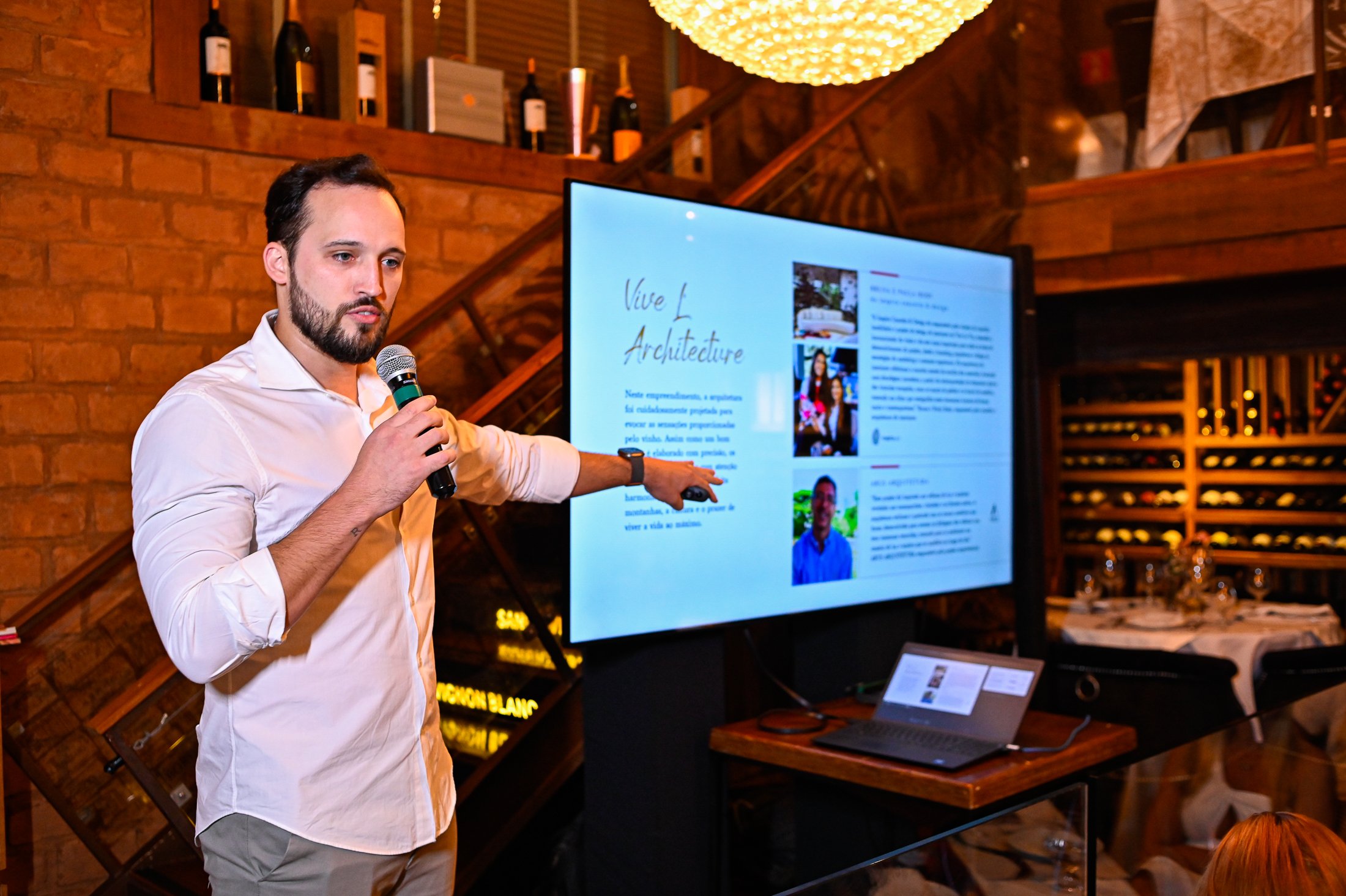 Desaparecer com elegância: esse é o novo sonho de consumo. Depois de acumular tudo que o dinheiro pode comprar, os superricos querem tempo, privacidade e retiros de bem-estar. Relatórios de comportamento e lifestyle como Tatler e Financial Times confirmam: o post luxury (pós-luxo) substituiu a ostentação por silêncio. Não é sobre ter um imóvel, é sobre ter um propósito. E foi pensando nisso que a Invite Inc. e o Grupo Aleixo reuniram clientes e parceiros para jantar no Aleixo, terça-feira, em torno do badalado empreendimento Vive Le Vin, em Pedra Azul. A CEO da Invite Inc., Cecília Zon, e o CEO do Grupo Uaine, Leonardo Freitas, foram os anfitriões. O projeto promete ressignificar o alto padrão nas montanhas, com conceito smart use.