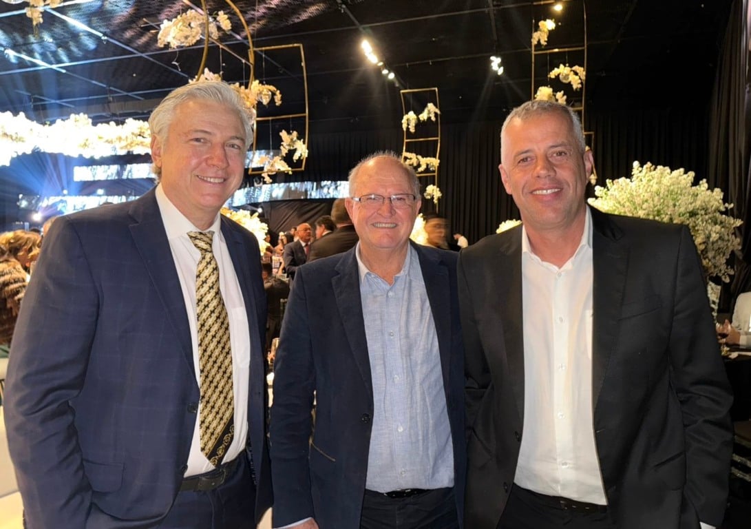 Franco Bortoluzzi, Alair Gagno e o deputado federal Evair de Melo noite de sábado no Le Buffet Master