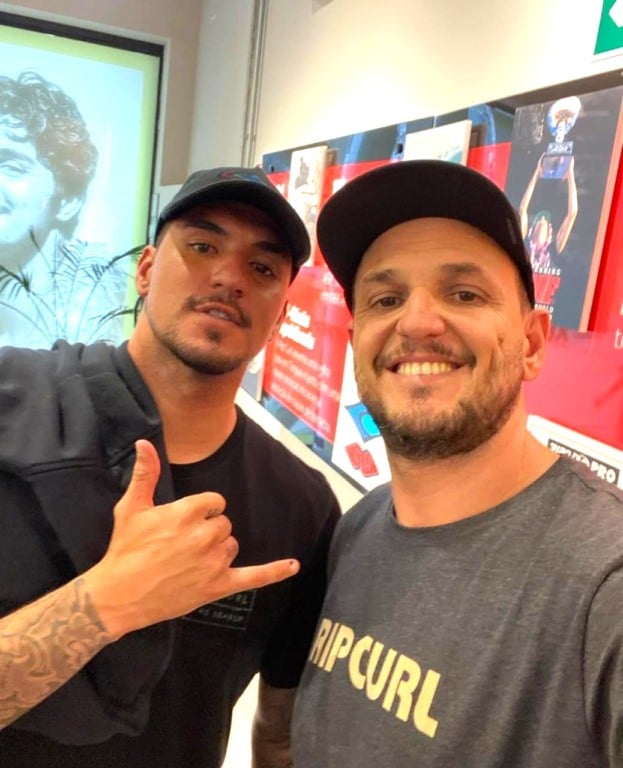 O tricampeão mundial de surf Gabriel Medina e Roberto Casotti