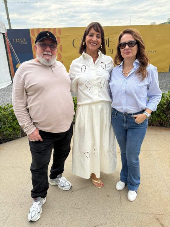 Nando Bussotti, Rê Araújo e Alê Bussotti: lançando o Cidade Camburi, ontem. Foto: AP