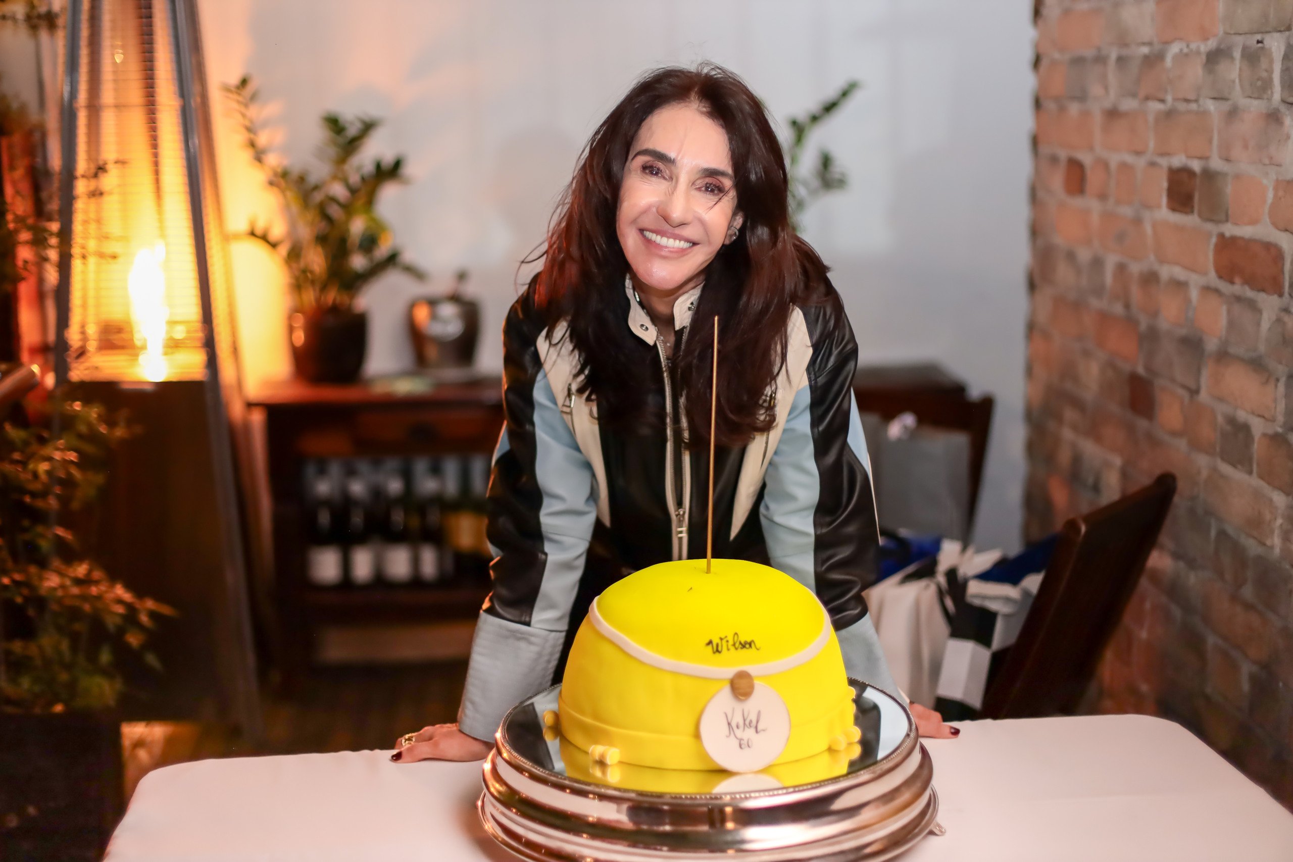 Radiante. E não por acaso. Maria Rachel Barroso fez um projeto para chegar aos 60 em sua melhor versão. Estabeleceu metas físicas, emocionais, psicológicas e espirituais. Nutricionista, endocrinologista, personal, fora a vela e os jogos de tênis. O esporte, aliás, foi o tema eleito por Isabella Suplicy para criar o bolo: uma bola Wilson, recheada de baba de moça e nozes . Os arquitetos João Mansur e Matheus Garcia, a prima Cristina Barroso com o marido, Leandro Villani, as amigas Suely Matias com os filhos Bruno e Luana, Marcia Abreu, Ticy Chieppe (que encomendou o bolo), Wendy Verjovsky e Tereza Scardua (que dá continuidade ao resgate de sua autoestima iniciado com o cirurgião plástico Paulo Müller), os craques do cabelo Cristal Bastos, Wanderley Nunes e Verinha Silva, os médicos Guilherme Carrilho, Camila Redondano e Ricardo Camargo com respectivos cônjuges. Um jantar de cinco pessoas virou festinha pra 22. “Me mimei, me hospedei no Fasano, fechei a varanda do Gero e foi maravilhoso. Sou tão abençoada que, mesmo com previsão de chuva, ganhei uma noite de lua cheia”, comemorou.