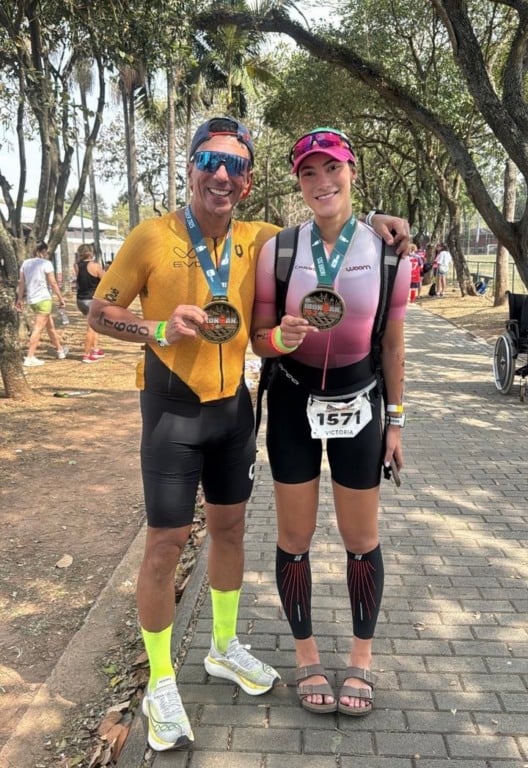 Reforçando os laços através do esporte, o empresário Leo de Castro e sua filha Victoria (foto) completaram mais um Ironman 70.3, desta vez na cidade de São Paulo. Victoria, pelo seu resultado, foi qualificada para participar do Mundial 70.3, próximo ano em Nice, na França. – Bom dia, Victoria!