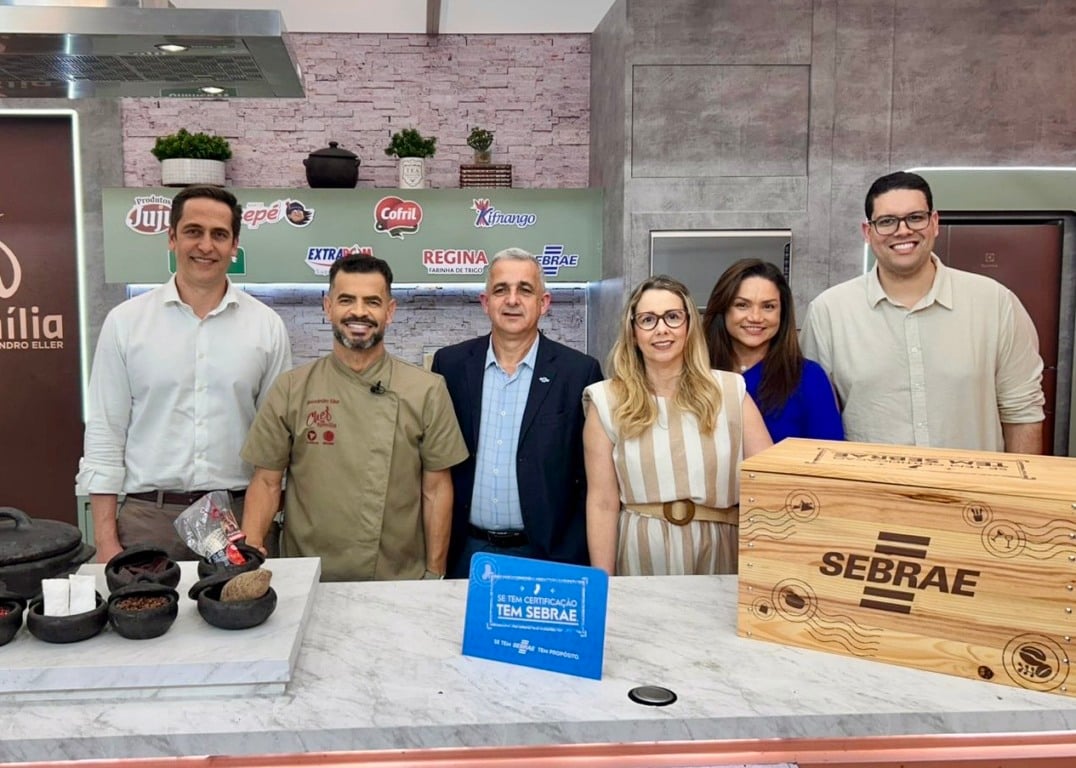 Pedro Rigo, superintendente do Sebrae-ES e Carla Tardiane, gerente de Marketing e Comunicação, estiveram no programa Chef de Família, a competição gastronômica da TV Vitória/Record, sob batuta do chef Alessandro Eller. Esse programa será exibido no dia 15 de novembro. Com eles, Davi Wescley, Romina Sathler e Pedro Henrique Rezende.