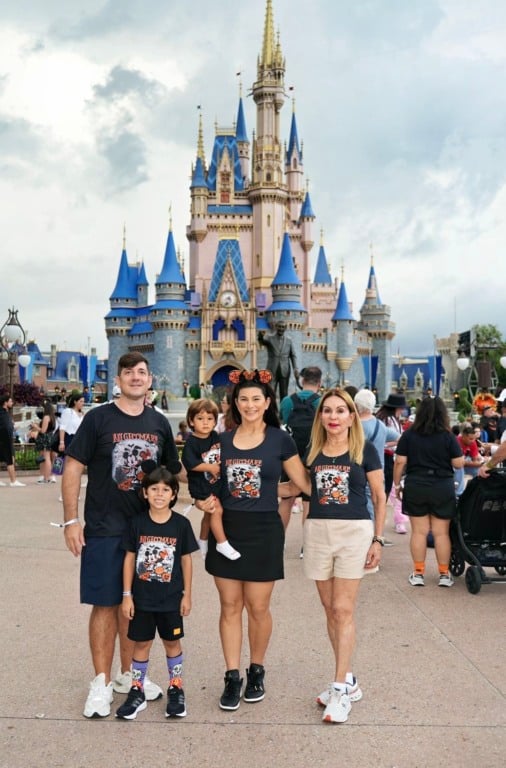 O aniversariante Arthur com seus pais Luciana e Tiago Bragança, o irmão Valentin e minha querida amiga Zezé Mansur comemorando na Disney