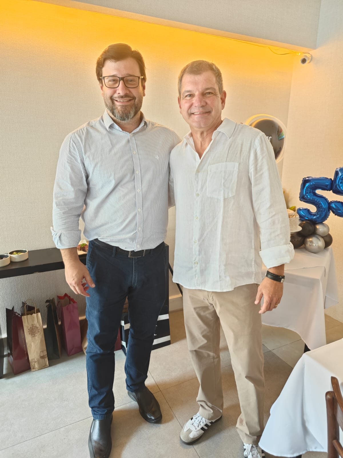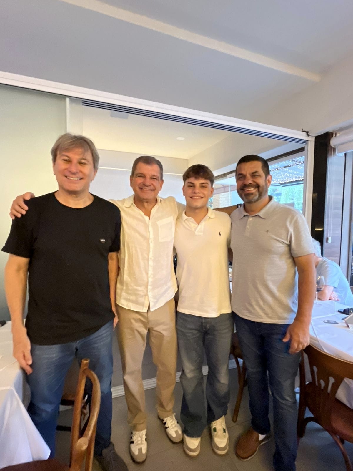 Mesmo morando na Europa há quase 13 anos, o publicitário Rodrigo Pimenta provou que é muito querido e que as verdadeiras amizades resistem ao tempo e à distância. Ele reuniu um time de amigos para brindar seus 55 anos, no Piu Esperciarias, em pleno dia de final do Flamengo. Atualmente, ele atua no ramo imobiliário e veio com o filho, Stephano, e a esposa, Marcelle, para o Natal em família. Também presente o irmão e cineasta Gustavo Moraes, que também mora fora há anos.