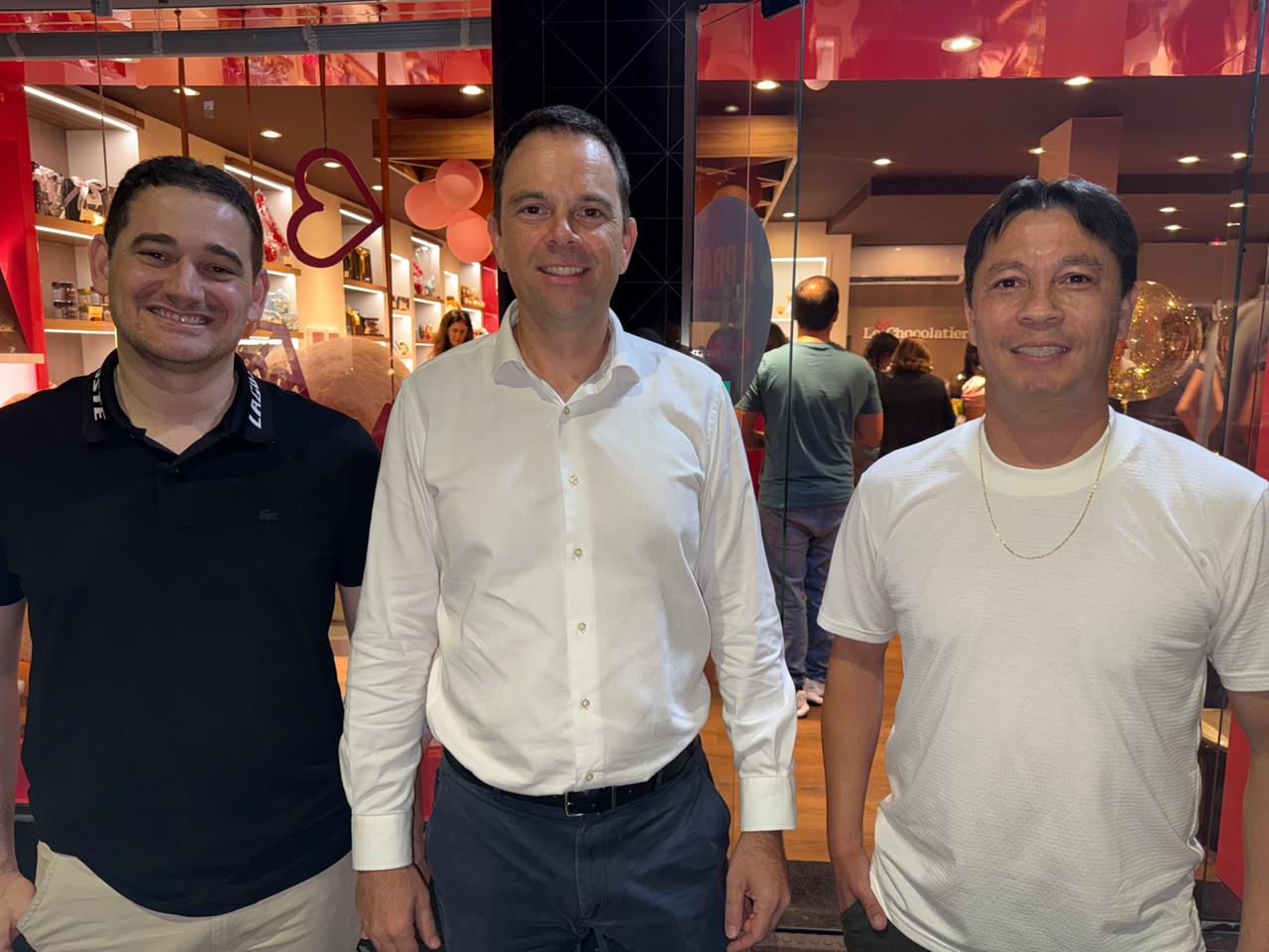 Marcio Piana, Angelo Piana e Alexandre Santos receberam na última quinta, na Le Chocolatier da Aleixo Netto, para festejar 40 anos da marca de chocolates artesanais capixaba, sem conservantes e sem gordura trans.