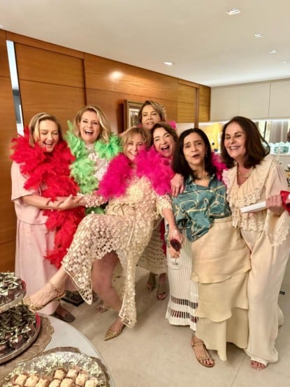 Elas se reúnem desde 2007, a maioria de Cachoeiro, amigas desde o primário, alternando entre as casas de Zezé Medeiros e Dea Garcia. Difícil saber qual das duas se esmera mais. Neste ano, Zezé recebeu com buffet elogiadíssimo da chef Anna Arreguy, que serviu bacalhau com batatas e cebolas carameladas entre outras delícias. Teve dança das cadeiras, sorteio de brindes e muita diversão. É uma volta ao tempo de infância e adolescência. Foi tanta farra que até se esqueceram de tirar a tradicional foto em volta da mesa maravilhosa. Entre as presentes, Solange Herkenhoff, Vania Moraes, Maria Tereza Nader, Angelina Cabral, Lyzandre Imperial e Glicia Vieira.