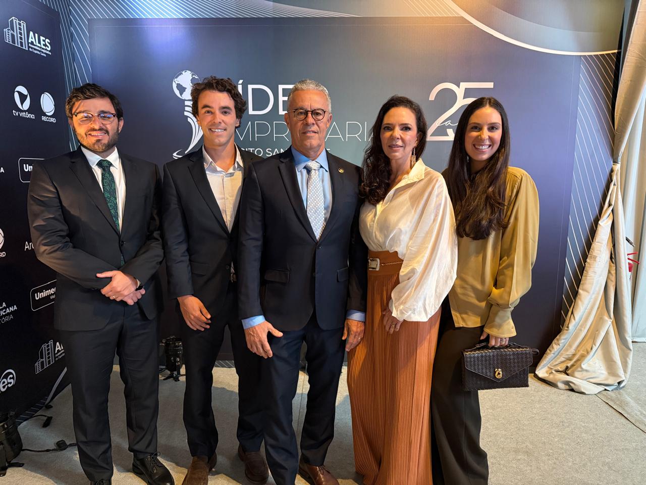 Henrique, Thiago, Kristine e Larissa Carneiro : prestigiando o recebimento do prêmio Líder Empresarial do ano na categoria “Escolas Privadas” por Leandro Carneiro.