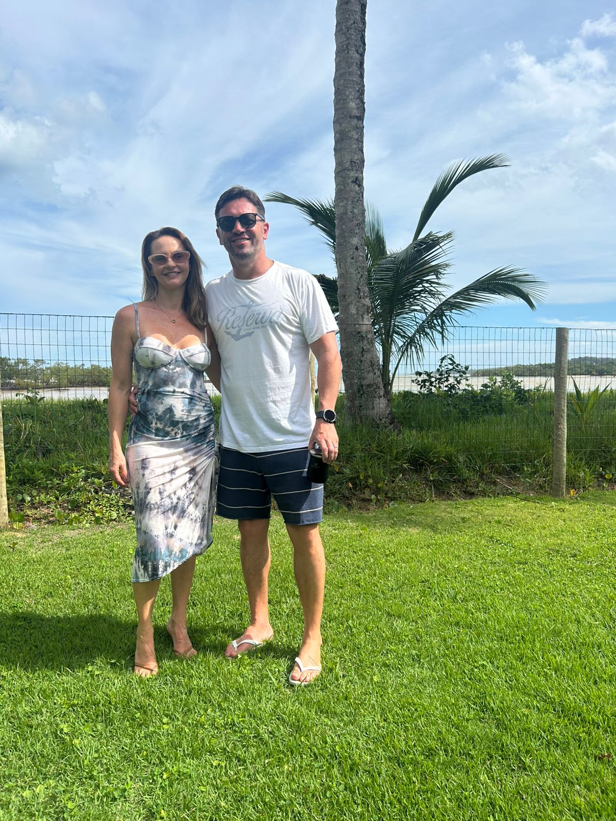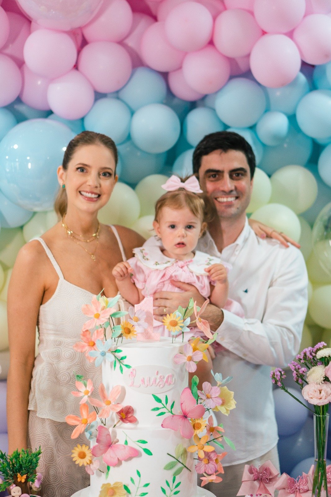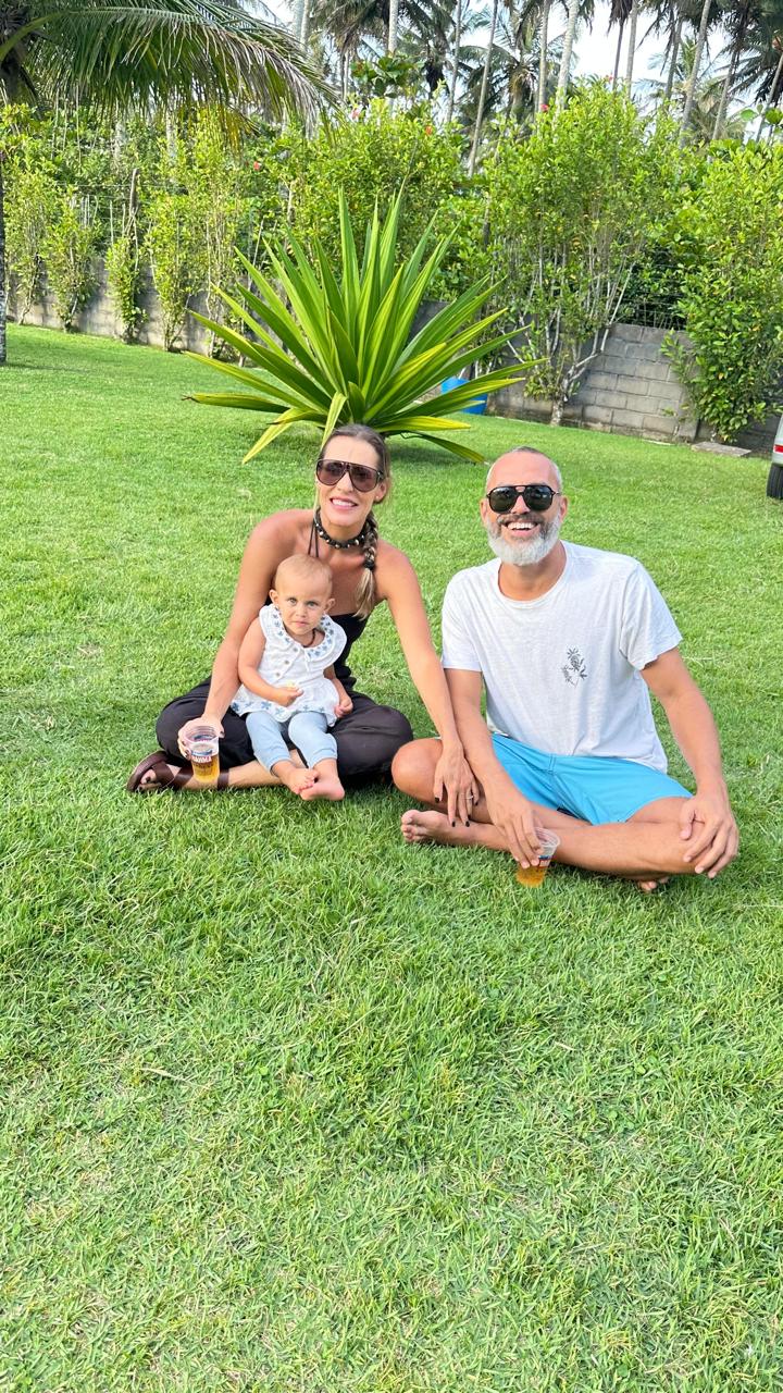 Barbara Puppin e Rodrigo Bachour: comemorando um aninho de Luísa, sábado, na Praia da Costa.
