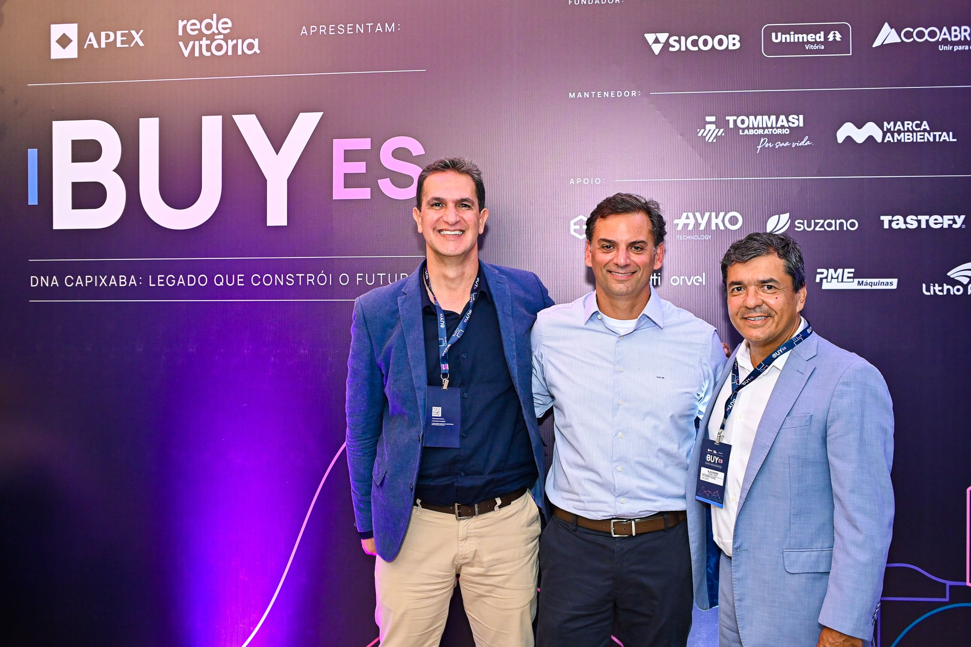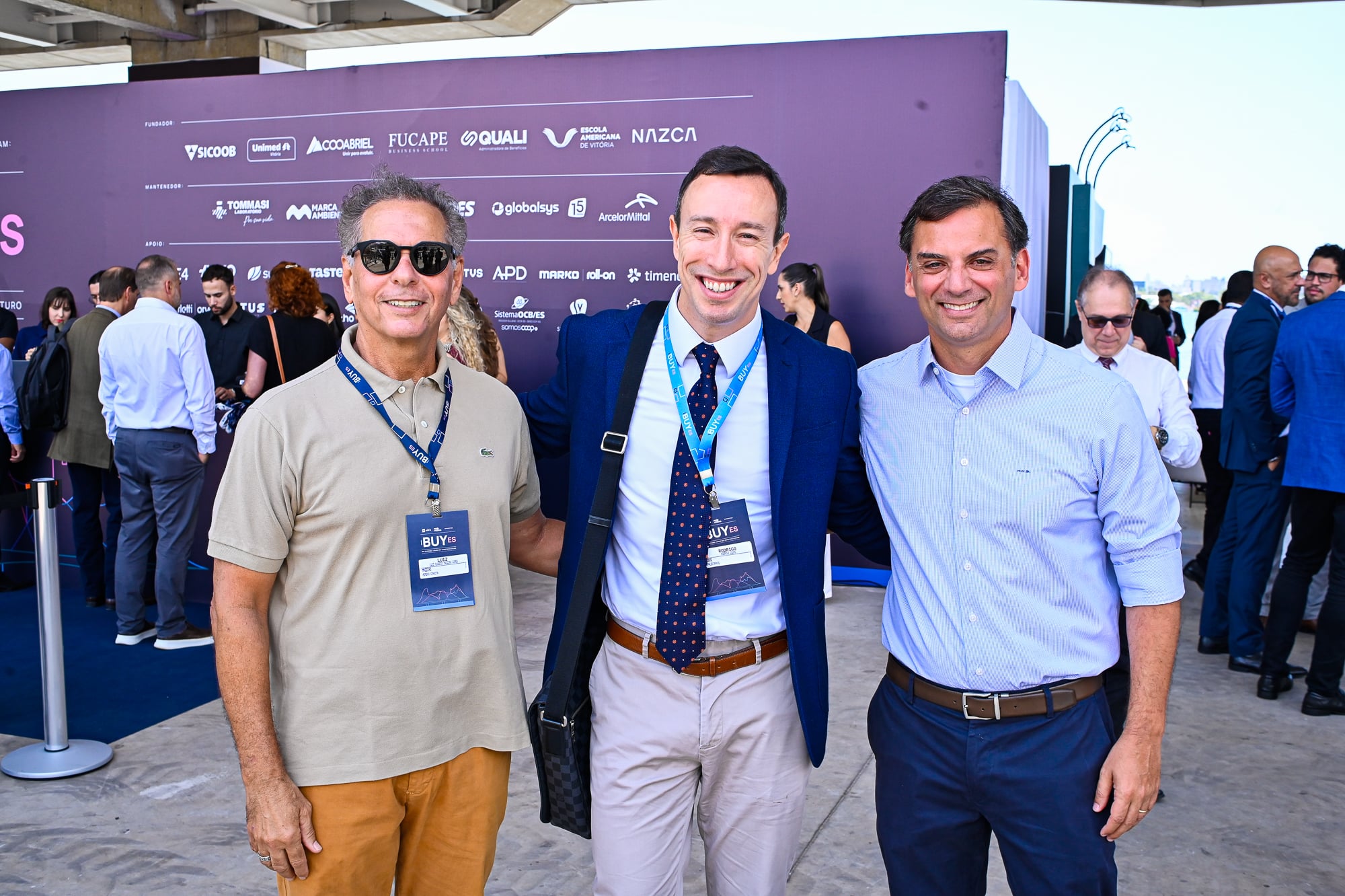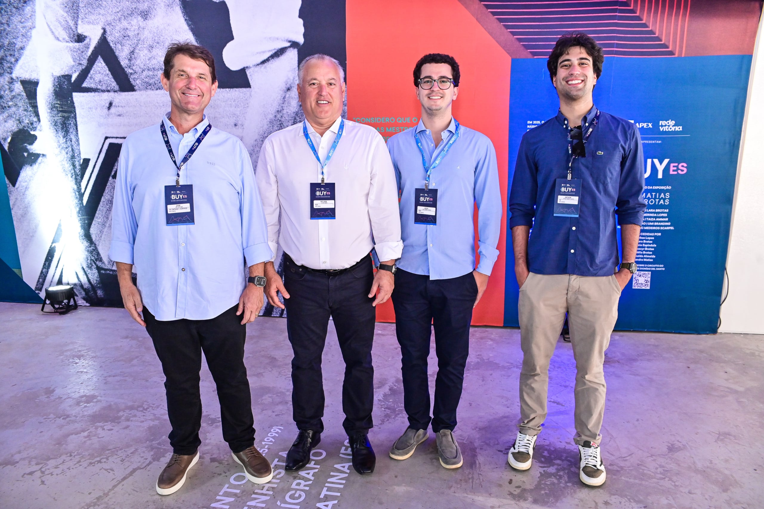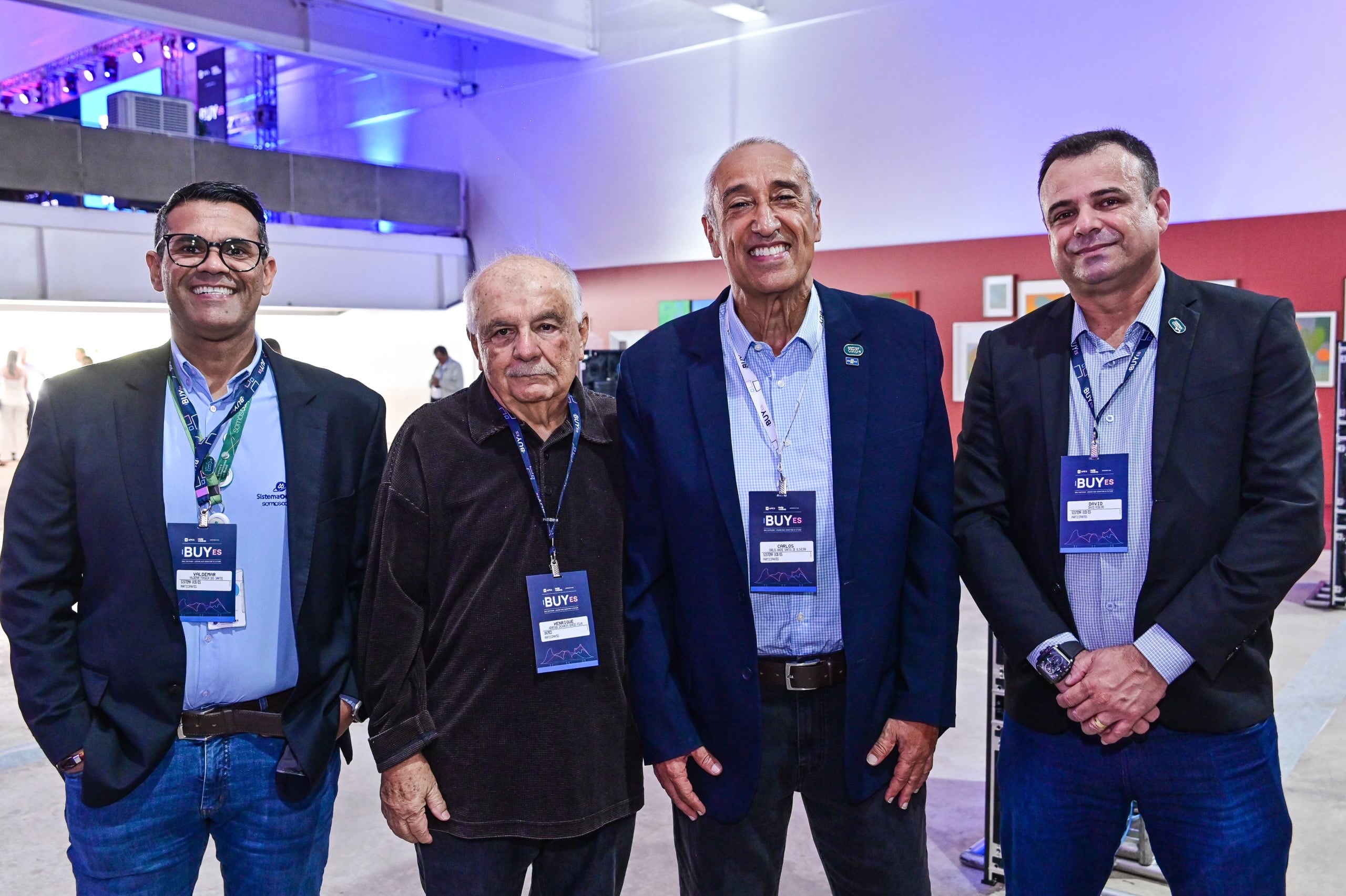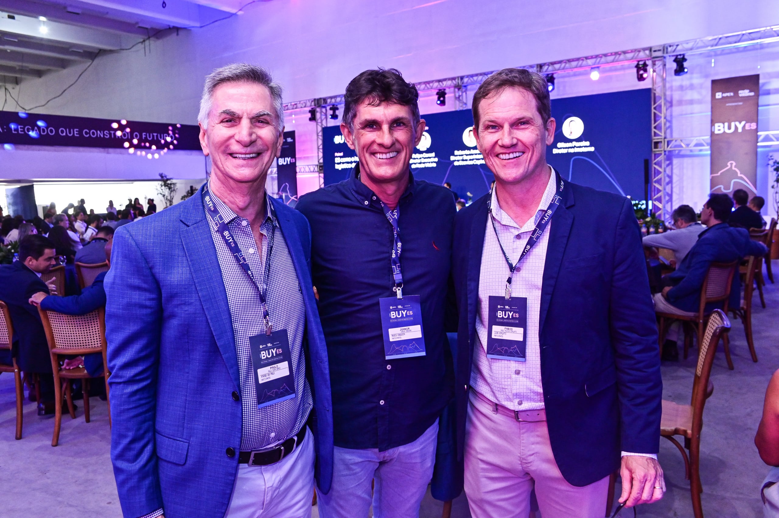 Rodrigo Barbosa entre Eduardo Reis, Eduardo Borges e Eduardo Gasperazzo : cúpula da Grand Construtora no Buy ES. Foto: Arthur Louzada
