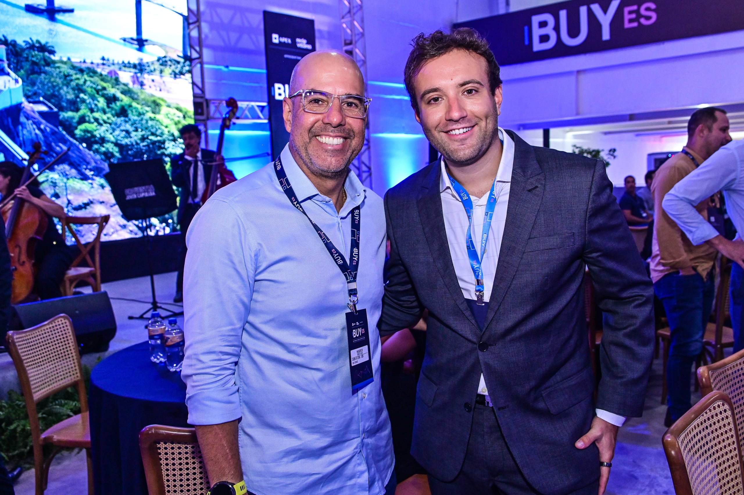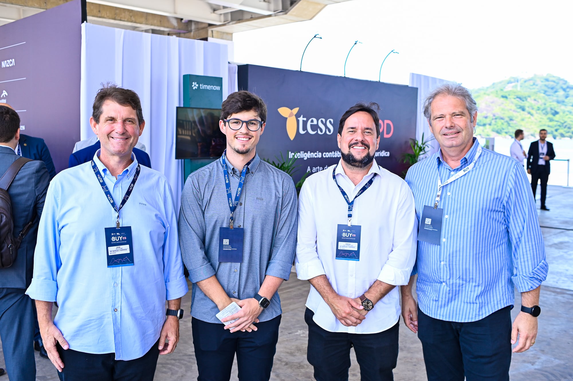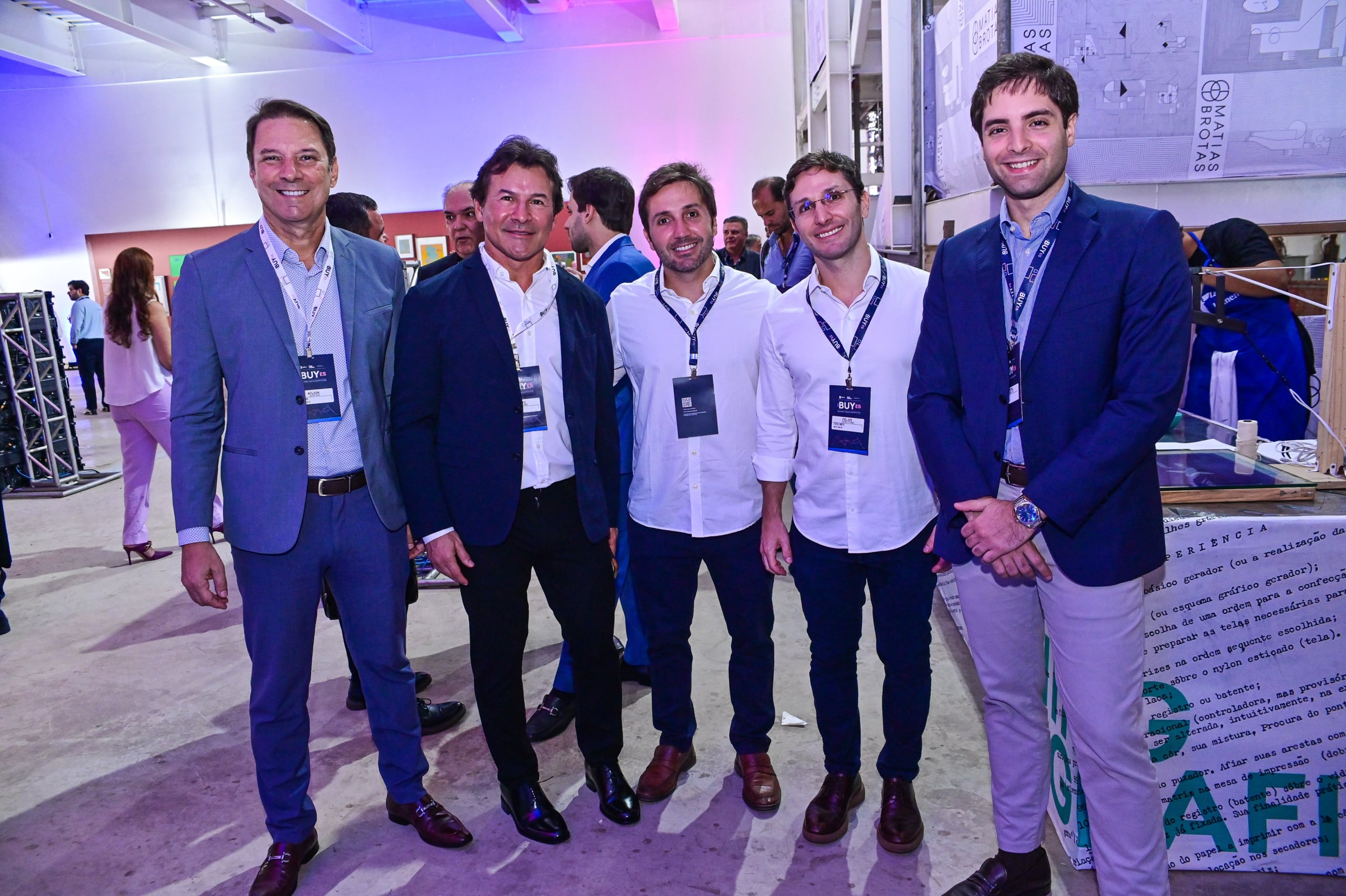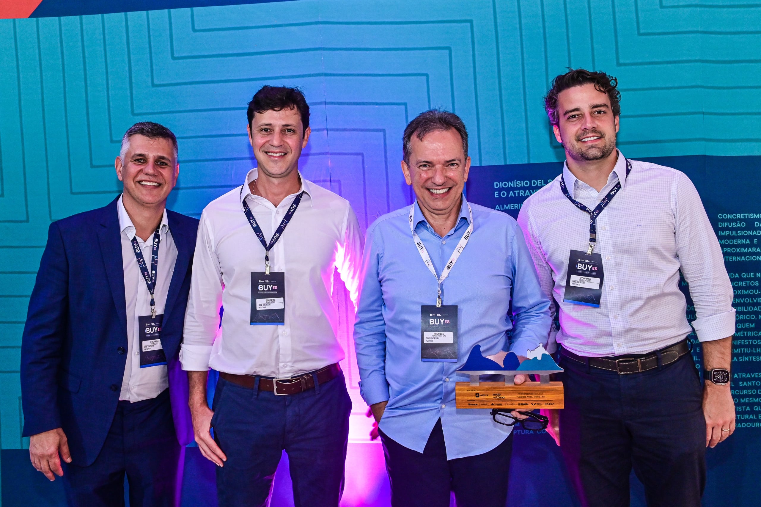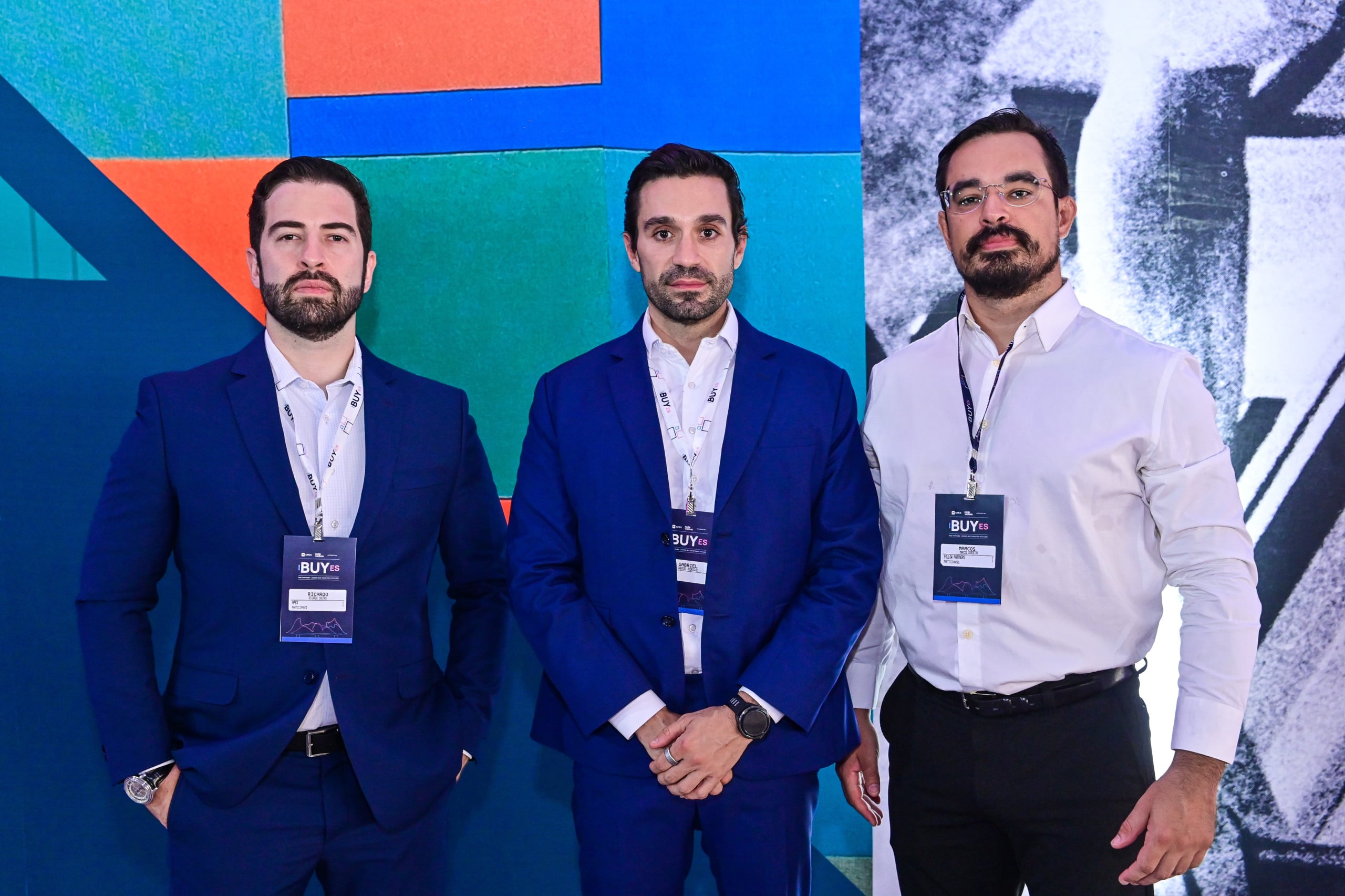 Rodrigo Barbosa entre Eduardo Reis, Eduardo Borges e Eduardo Gasperazzo : cúpula da Grand Construtora no Buy ES. Foto: Arthur Louzada