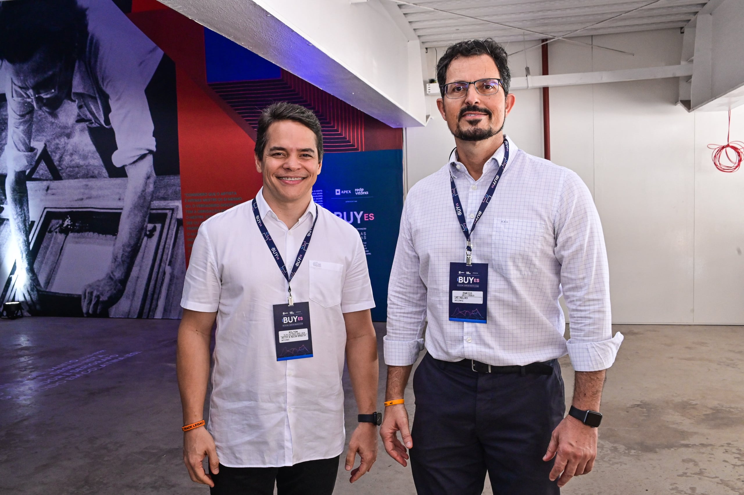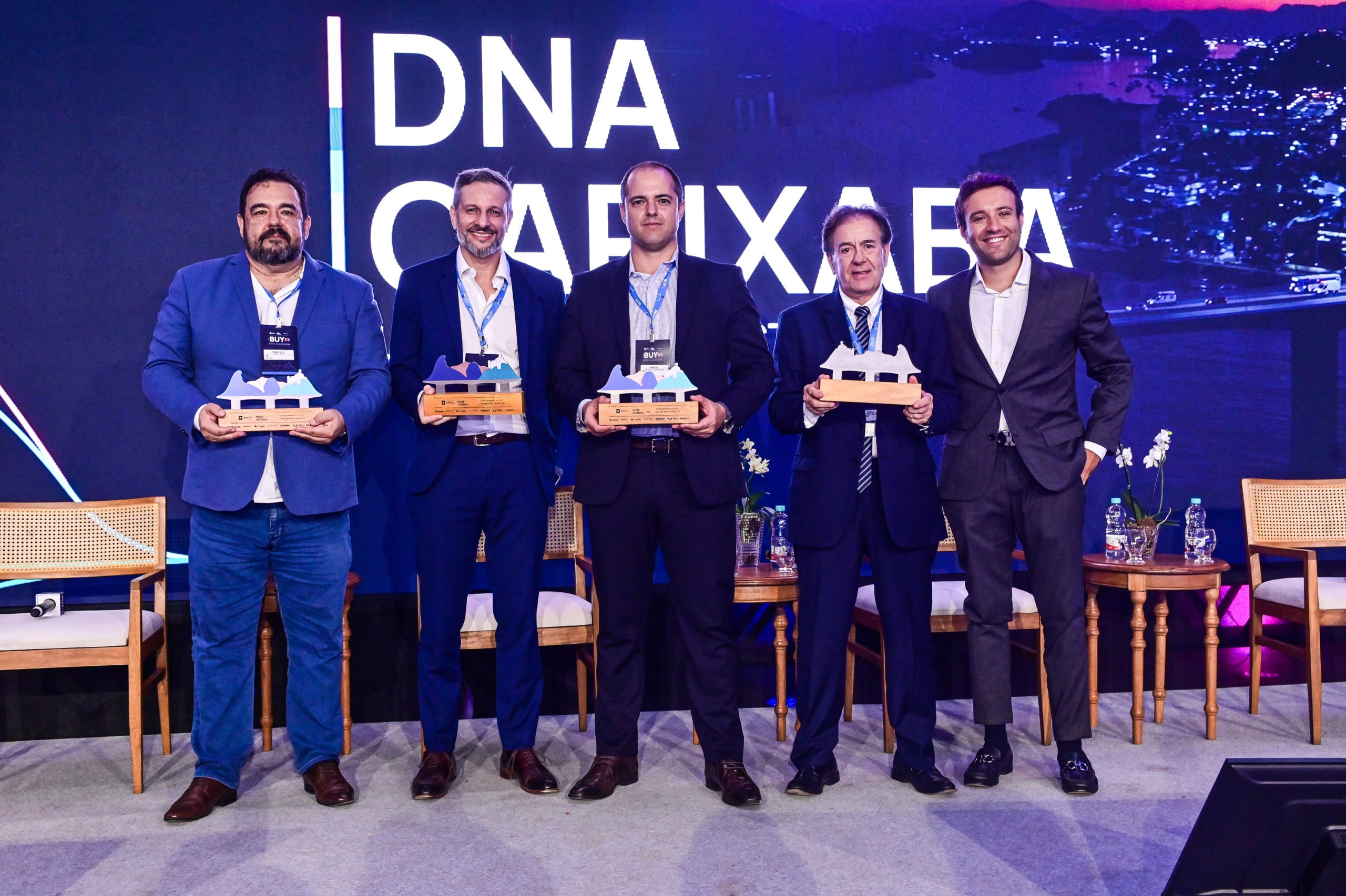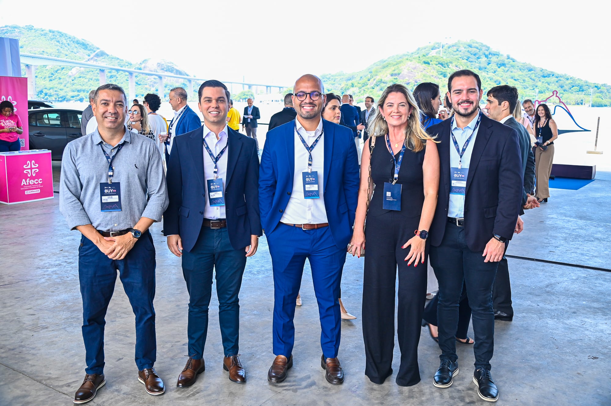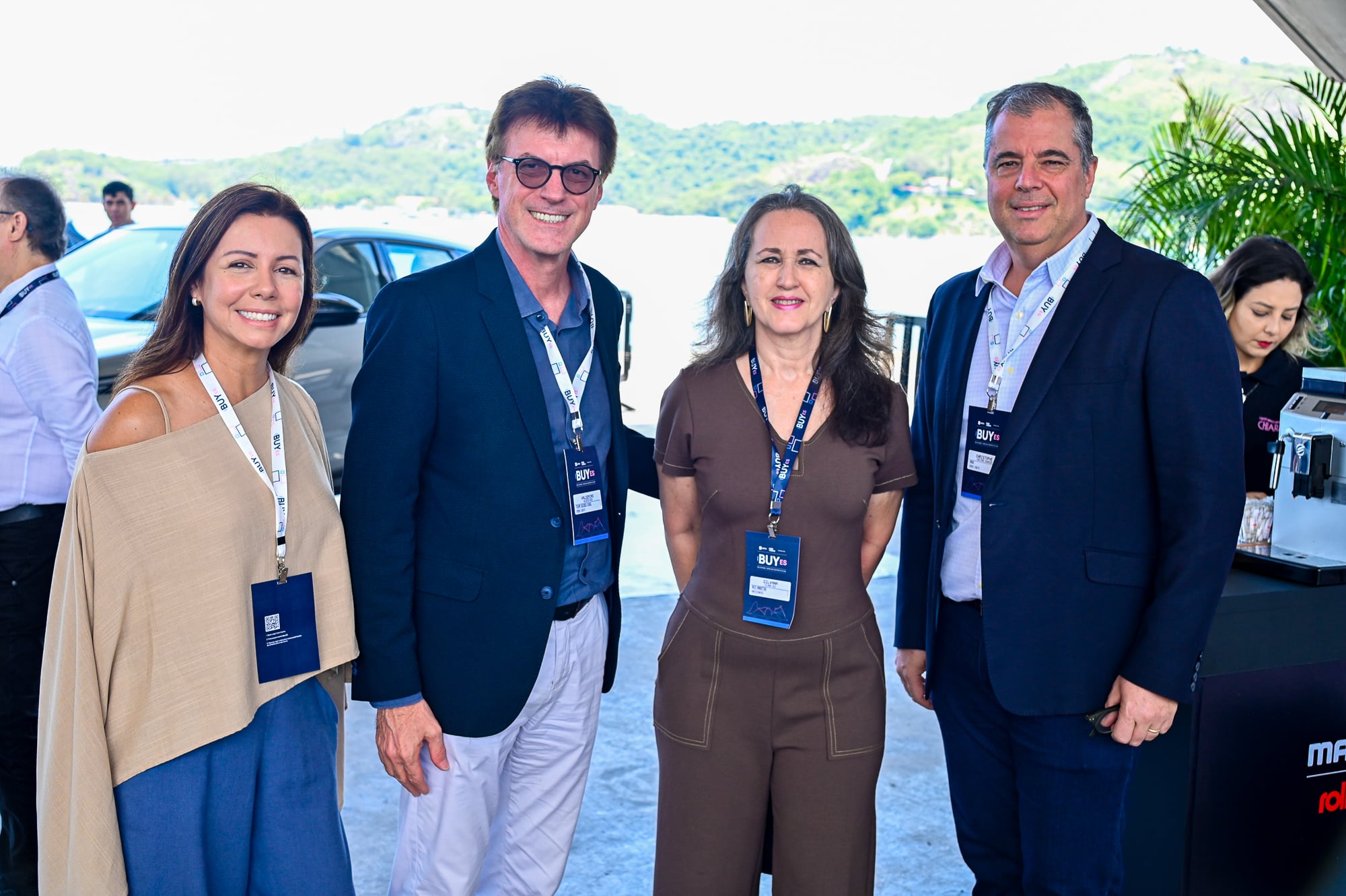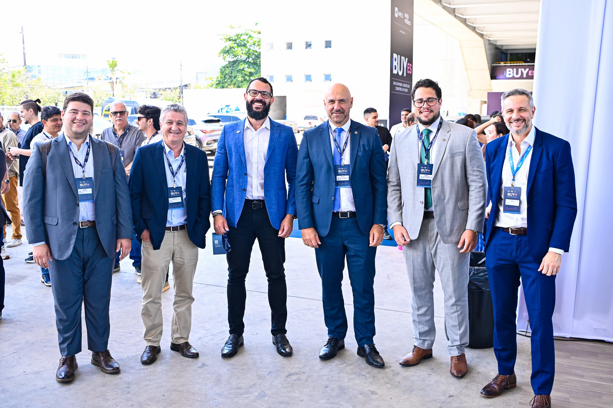 Rodrigo Barbosa entre Eduardo Reis, Eduardo Borges e Eduardo Gasperazzo : cúpula da Grand Construtora no Buy ES. Foto: Arthur Louzada