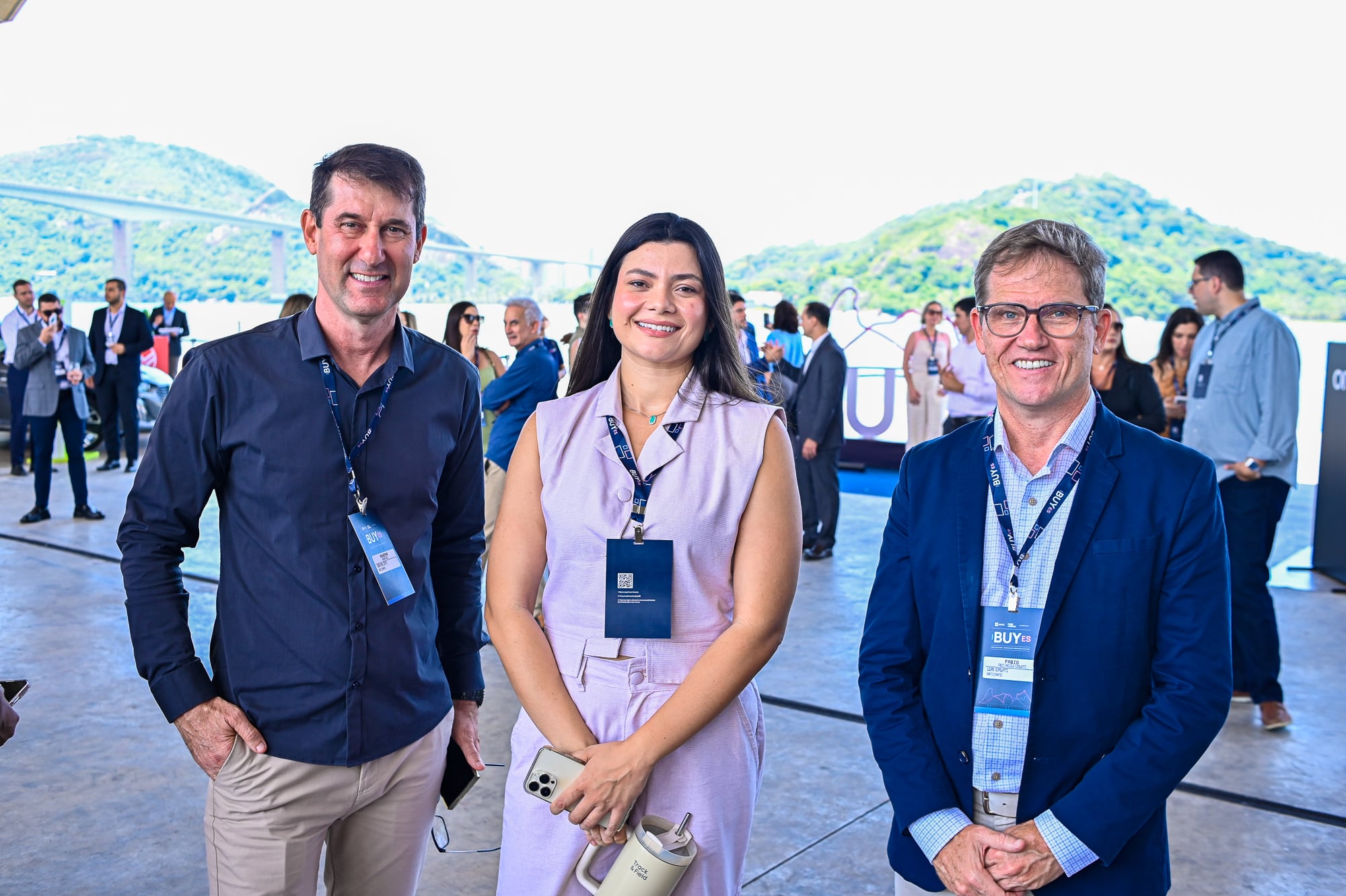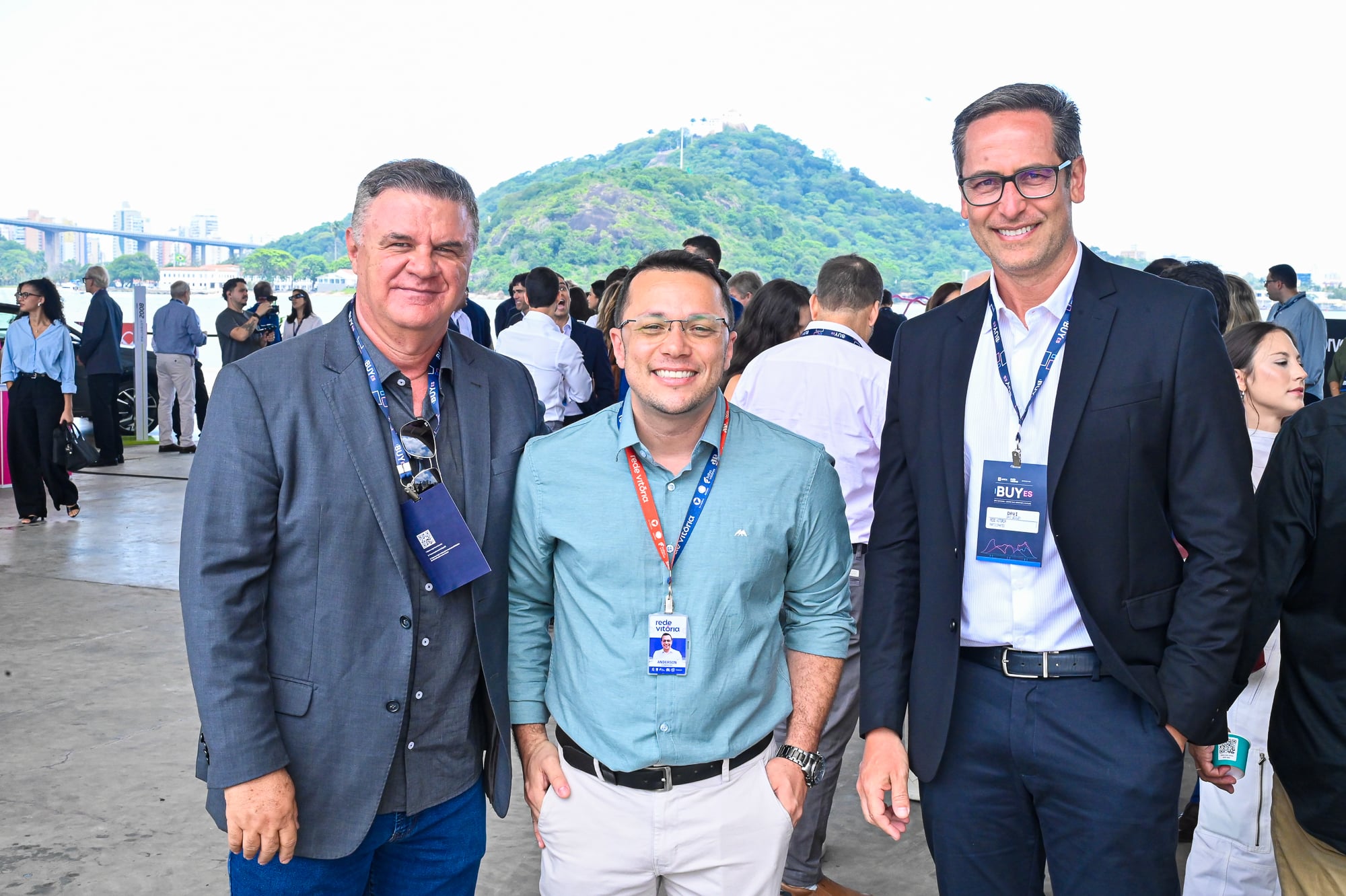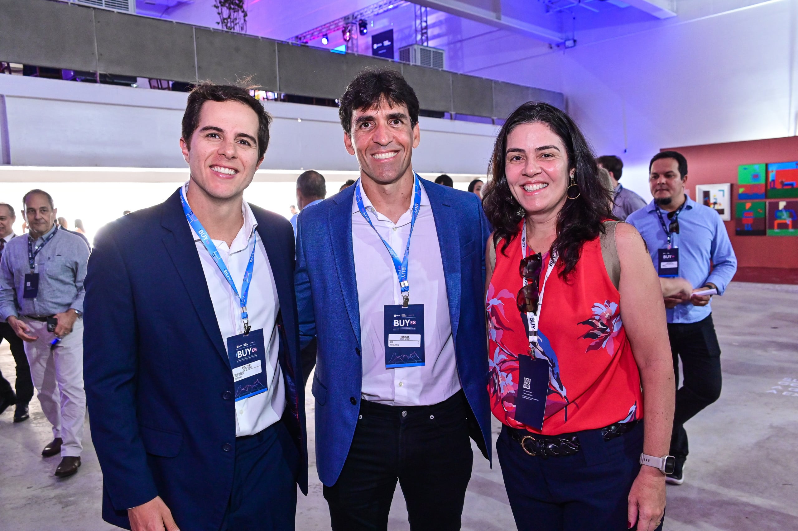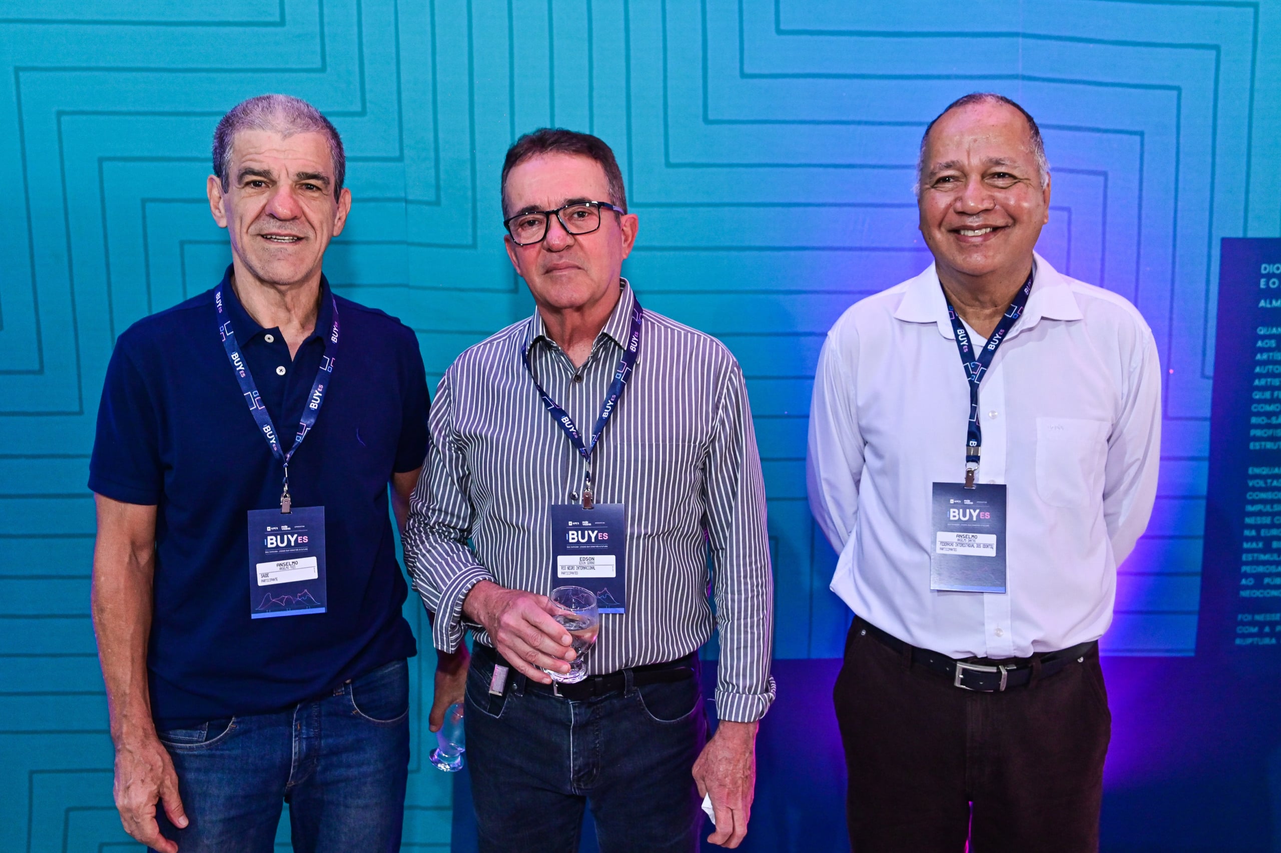 Felipe Caroni, Bruno Chieppe e Juliana Tommasi: ouvindo as lideranças da economia durante o Buy ES , no Cais das Artes. Foto: Arthur Louzada
