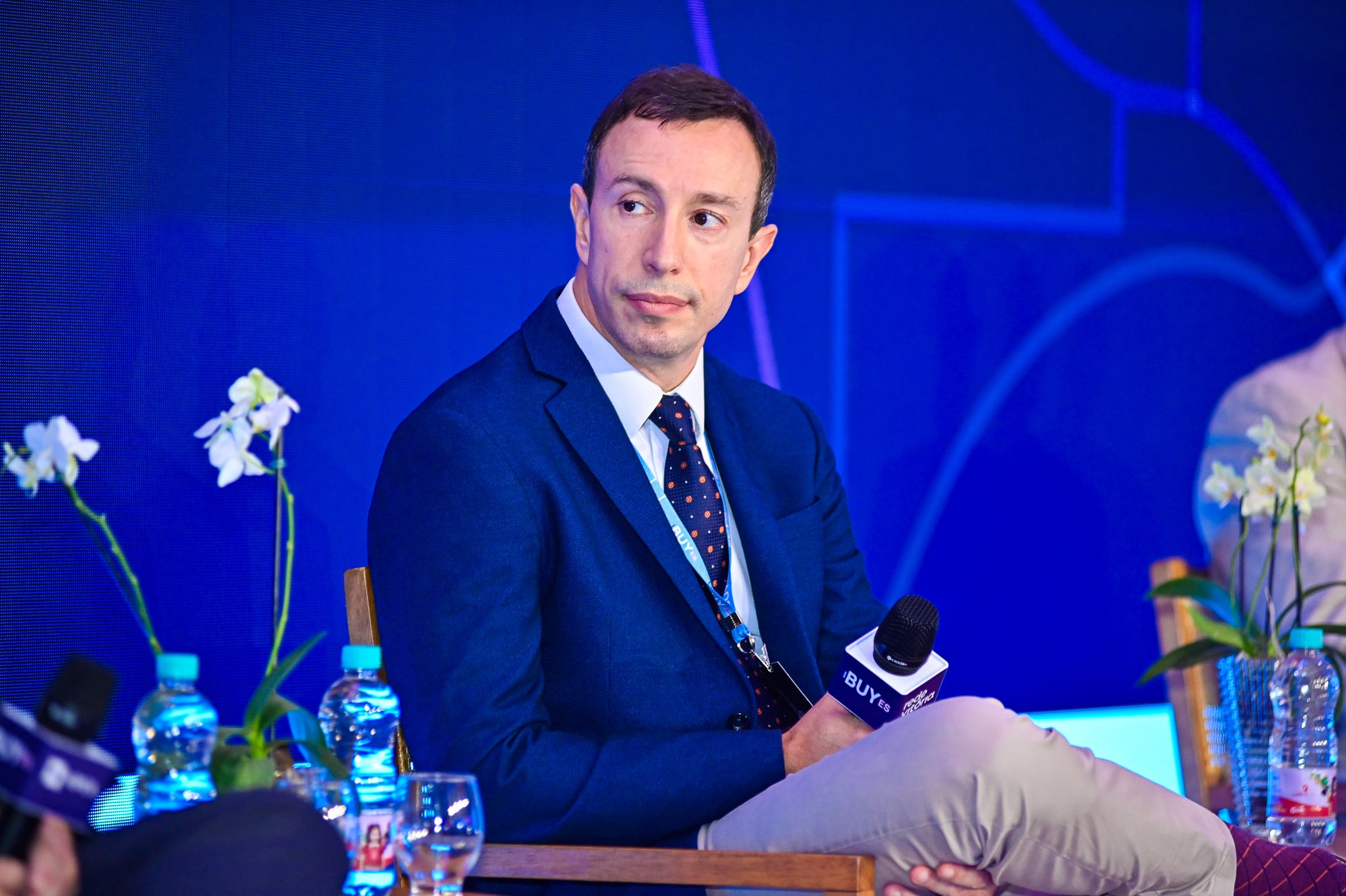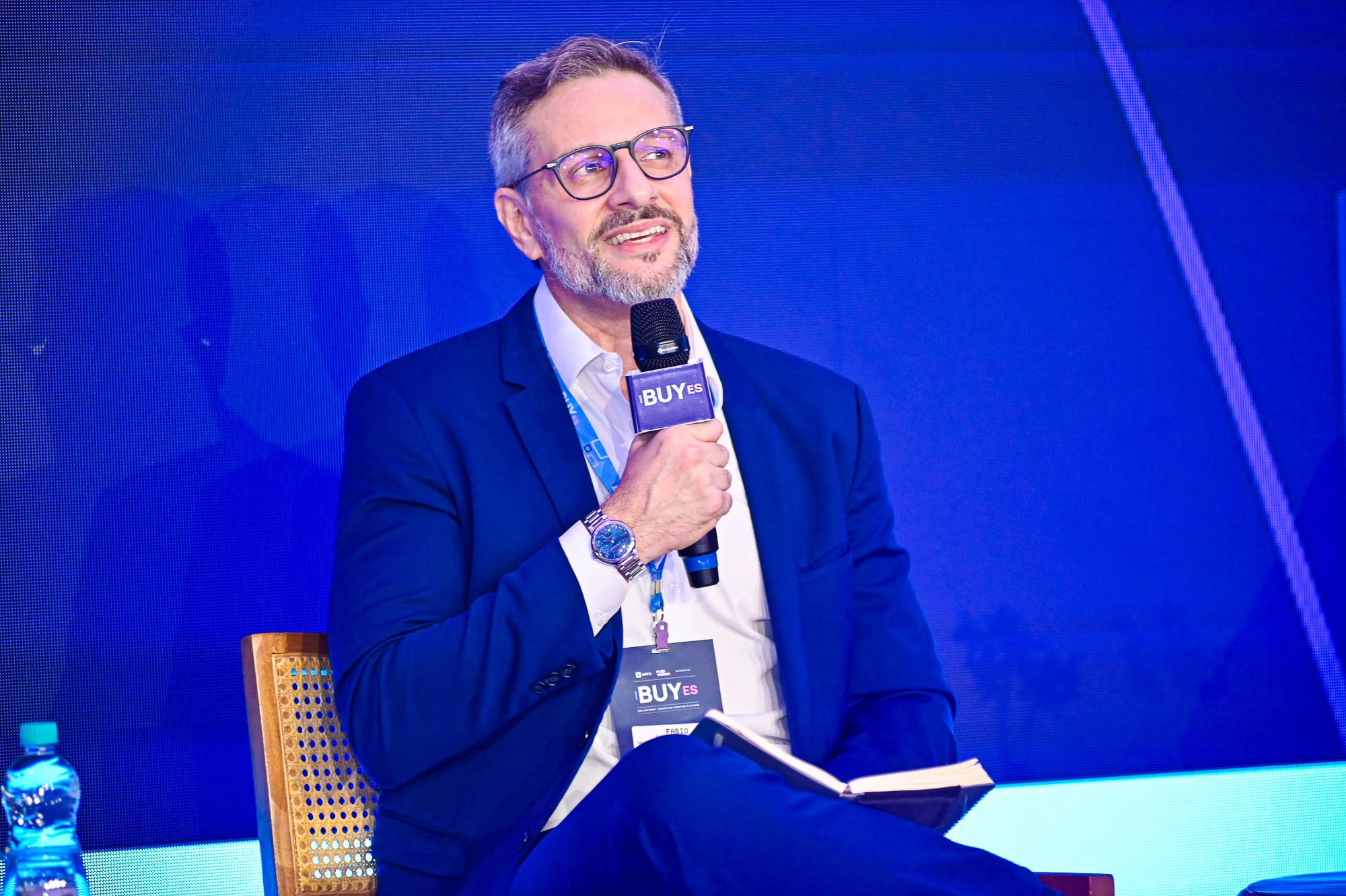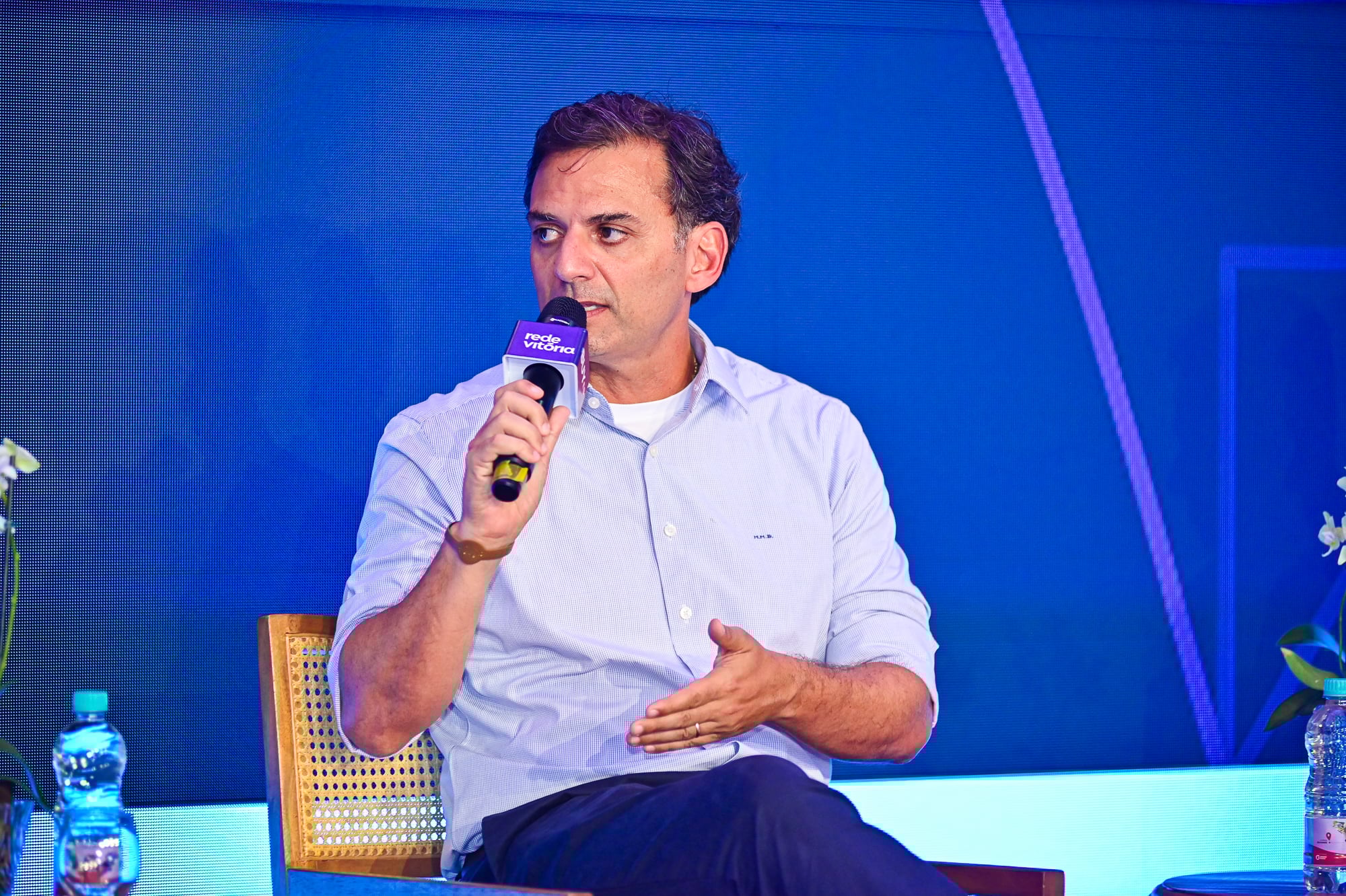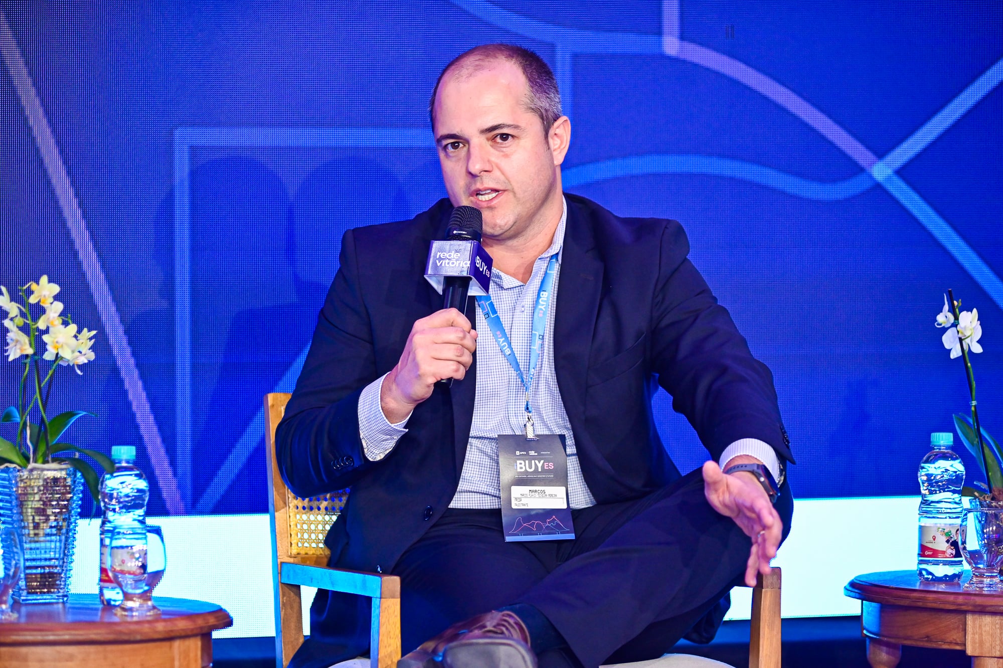 Felipe Caroni, Bruno Chieppe e Juliana Tommasi: ouvindo as lideranças da economia durante o Buy ES , no Cais das Artes. Foto: Arthur Louzada