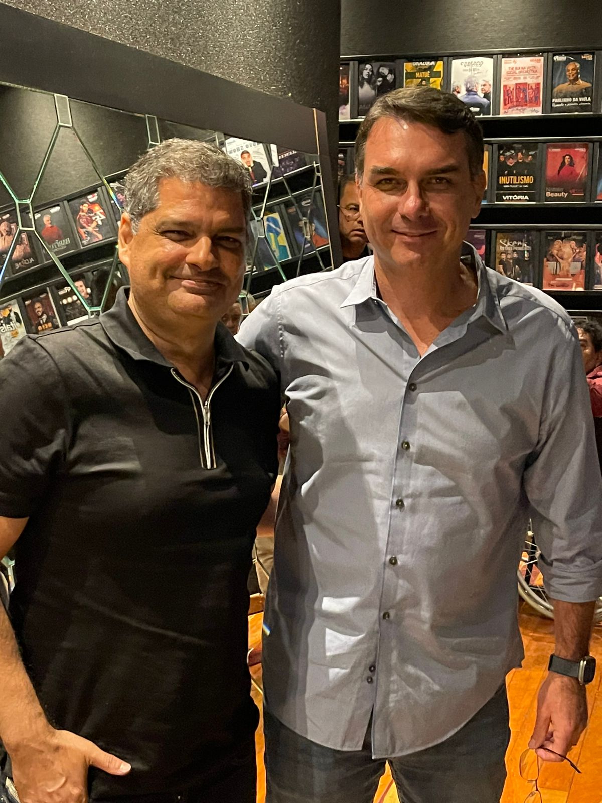 Patrick Ribeiro recebeu Flavio Bolsonaro para o evento Grande Clamor pelo Brasil”, organizado pelo senador Magno Malta (PL), segunda-feira, em seu espaço de eventos, no Aeroporto de Vitória. “Fiquei feliz em vê-lo, foi uma alegria de alma, ele é diferente”, disse PR. Também estavam presentes Carlos e Renan Bolsonaro.