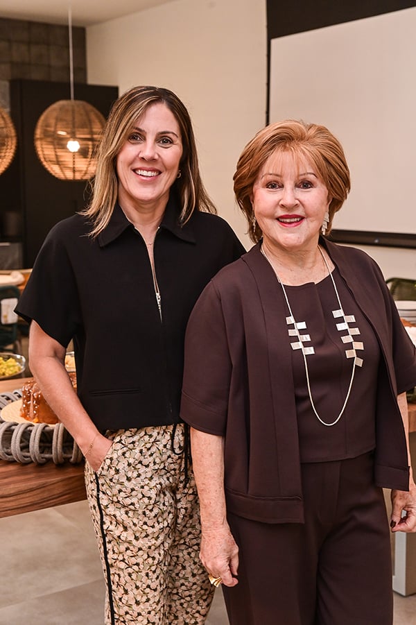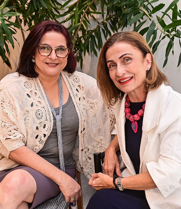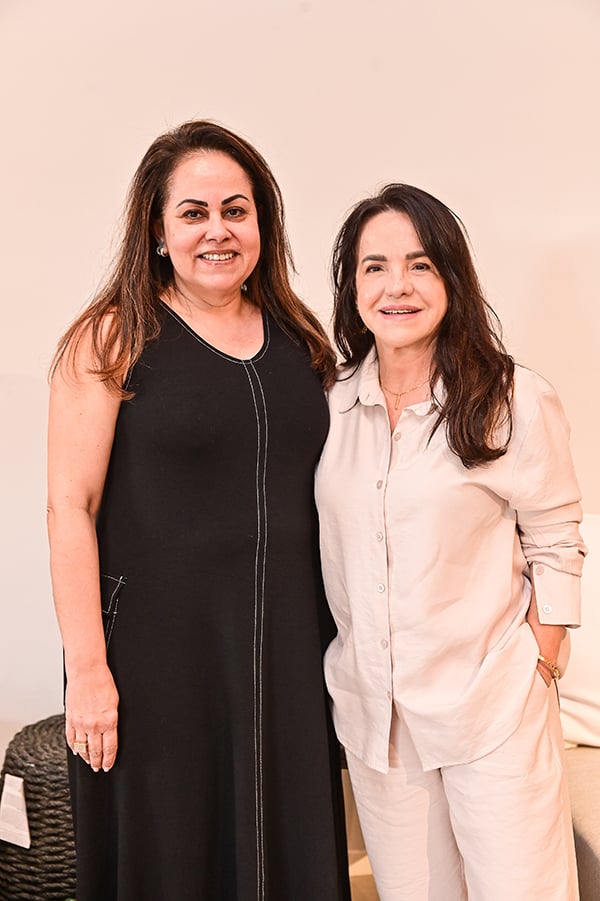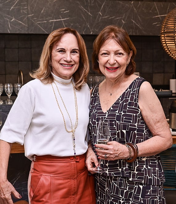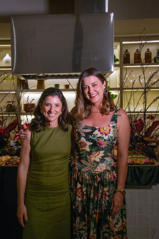 Juliana Barreto e Renata Consuelo, dupla de sucesso da Consuelo Cuisine, durante o lançamento do Menu Festas 2025 — uma celebração de sabores, estilo e boas histórias à mesa.