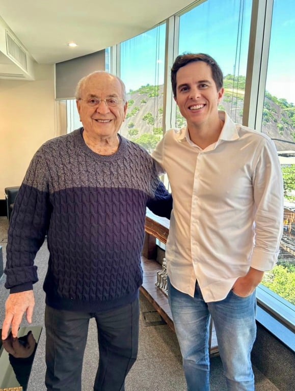Helio Dórea e Felipe Caroni, diretor executivo da Rede Vitória em encontro empresarial na sede da empresa