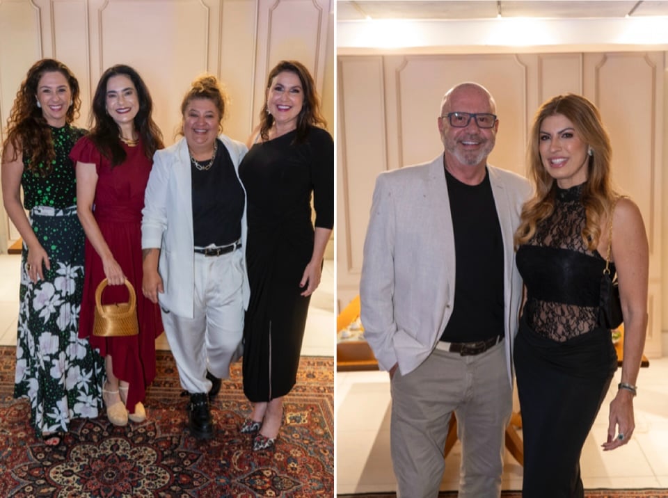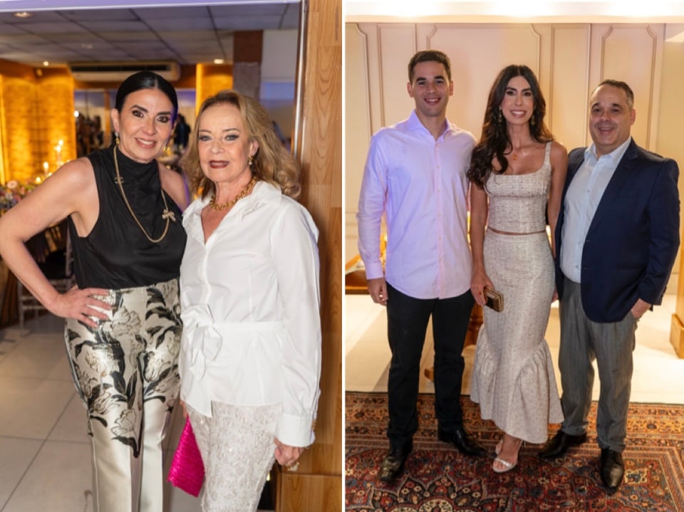 Uma das mesas dessa noite, entre outras, reuniu a renomada decoradora Rita Garajau, Gracinha Nader, Lucia Medina, Walmir Sasso e sua filha Claudia. Ao lado, Renata Pacheco, Rita Bumachar Brotto e Kler Ferraz. Denise Gazzinelli, que veio esticando de outra festa, disse: “não deixaria de estar presente”. Fatima Camargo, sempre elegante, foi outra presença. Uma dupla chique, Denise Azevedo e Lina Hemerly. Marilena Duarte e sua filha Renata estavam lá e no outro dia seguiram para o Uruguai. Presença da amiga Paula Pazolini, primeira dama de Vitória