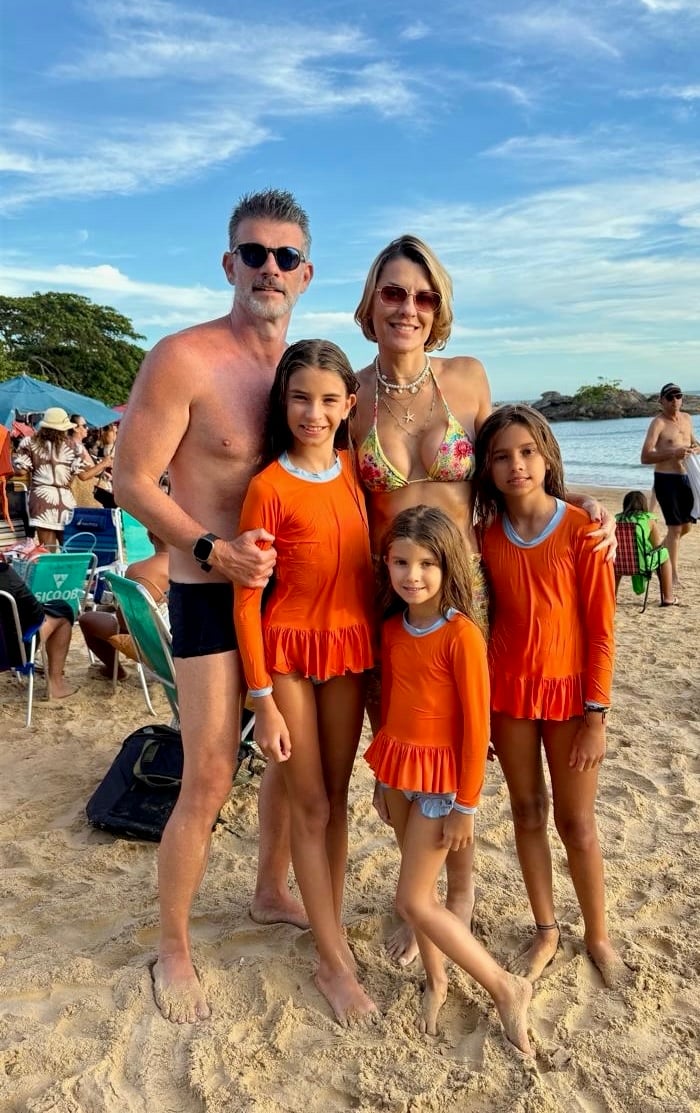 Peracanga beach: a família bacana de Rafaela e Fabricio Zocolotti com as filhas Barbara, Betina e Bella (foto Miguel Dórea)