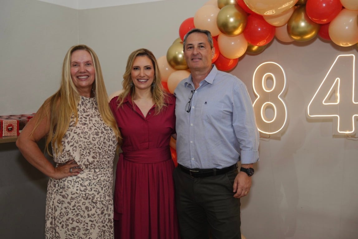 Lucila Lopes, Recursos Humanos da Buaiz Alimentos, com a vice-presidente Eduarda Buaiz e o CEO Flávio Schiavone: comemorações dos 84 anos da Buaiz Alimentos. A celebração envolveu equipes do Moinho, Café Número Um, Tims, Fábrica de Misturas para Bolo e Centro de Distribuição, além das equipes que atuam em Minas, Rio, São Paulo e Bahia. Cada colaborador recebeu um bentô cake personalizado Paola Cakes.