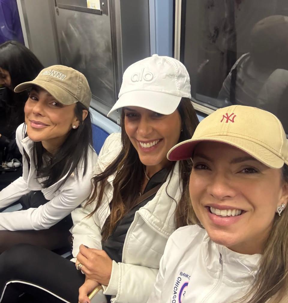 Carolina Neves, Marianne Pernambuco e Patricia Castro : de metrô para alcançar os maridos Pedro Trindade, Fabio Chambô e Leo Castro na linha de chegada da Maratona de Chicago