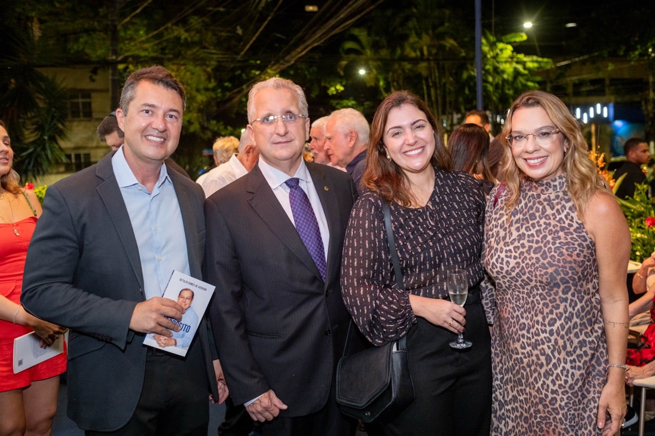 Getulio Gomes de Azevedo, fundador das Óticas Paris, deixou a loja da Aleixo Netto e a calçada lotadas para o lançamento de seu livro, “Foco no Propósito”,, quarta-feira. Mais de 100 convidados foram levar seu abraço, comprar a publicação e ganhar um autógrafo do autor. O empresário que há 46 anos lidera o varejo óptico no Espírito Santo fez agradecimentos especiais à esposa, Denise, e filhas, Mariana e Ana Luiza, além dos jornalistas Carol Veiga e José Antonio Martinuzzo. Ana Luiza, que assume a direção executiva da Paris, também homenageou o pai e a equipe. Giorgio Pradi, presidente da EssilorLuxottica Brasil, e Carlos Guilherme, presidente da Marcolin Brasil, vieram a Vitória especialmente para prestigiar Getulio. Ele merece!