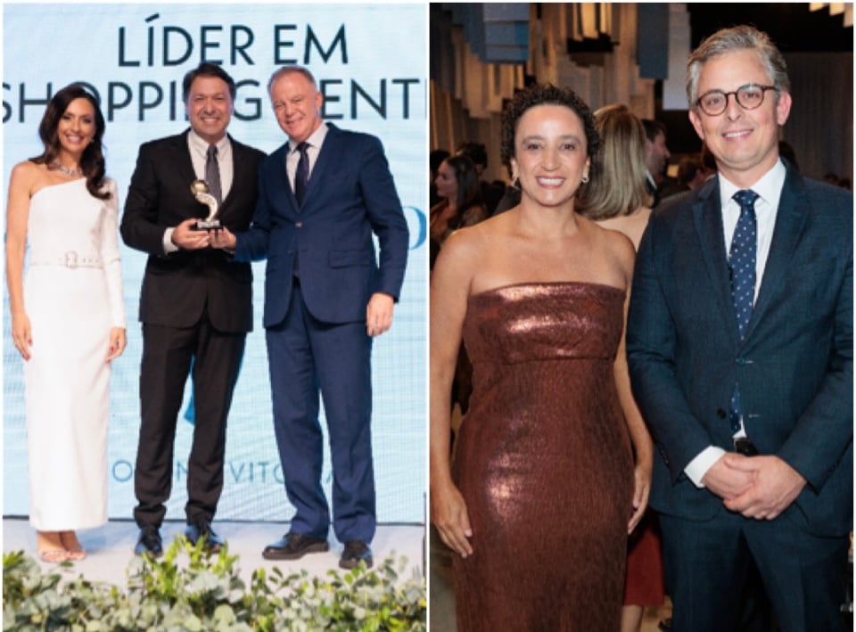 O governador Casagrande entrega o troféu a Raphael Brotto, diretor geral do Shopping Vitória, e Juliana Lyra. Ao lado, Erica Neves e o advogado André Perenzin