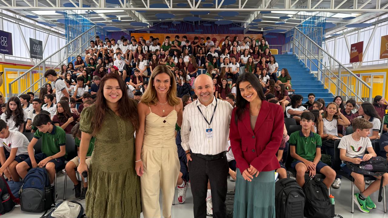 O novo Campus Aeroporto começou a funcionar ontem com o início das aulas em 2026, um dia para marcar a história da Escola Americana de Vitória. Aliás, toda a equipe EAV esteve presente para receber os alunos do Ensino Fundamental II e Ensino Médio que terão a oportunidade de estudar numa escola internacional focada em inovação, sustentabilidade e bem-estar, com uma das mais modernas infraestruturas esportivas educacionais do Estado. Na boas vindas, Mariana Buaiz, vice-presidente, Cristiano Carvalho, diretor geral, Jennifer Rocha, diretora Pedagógica e Ana Maria Buaiz, diretora de Relações Institucionais.